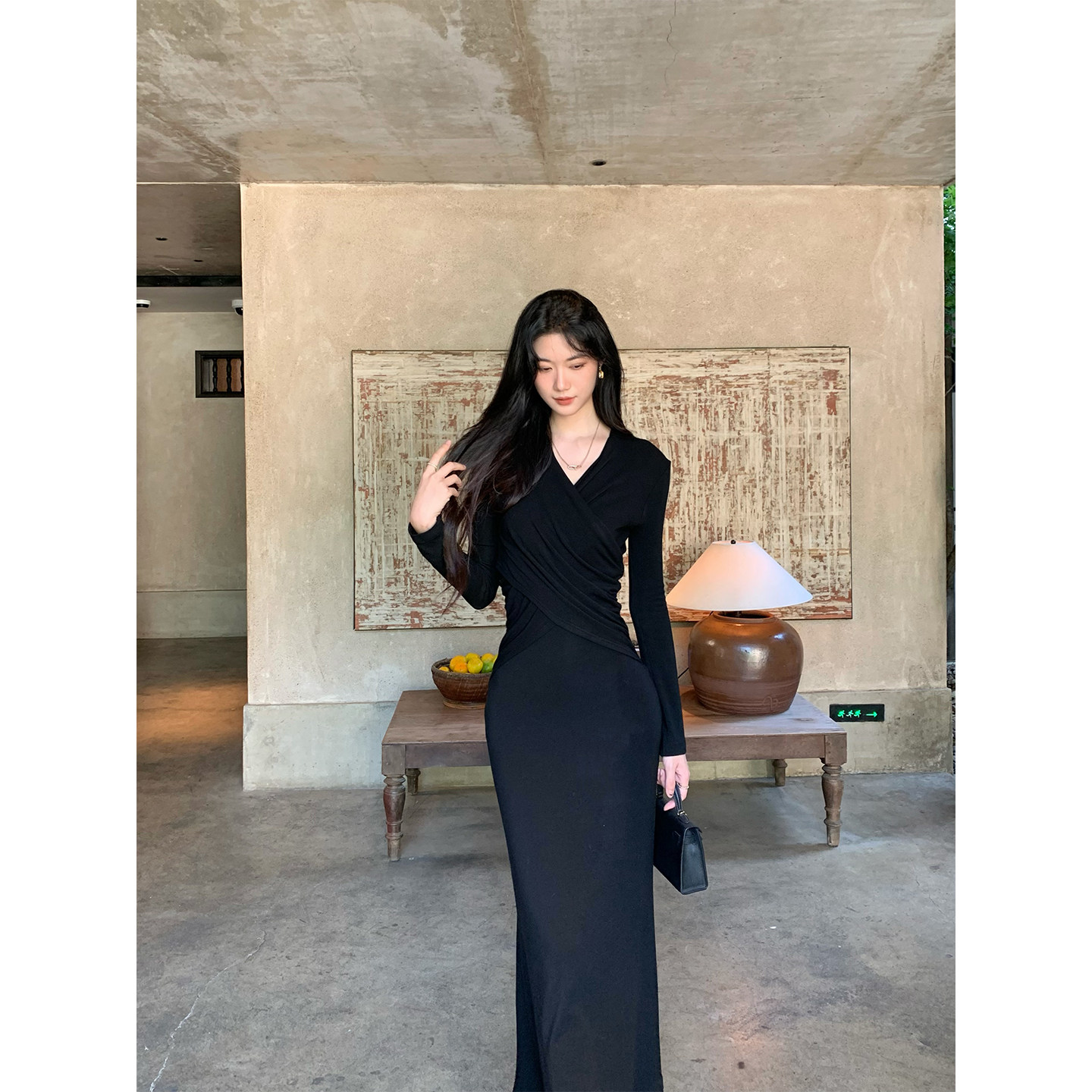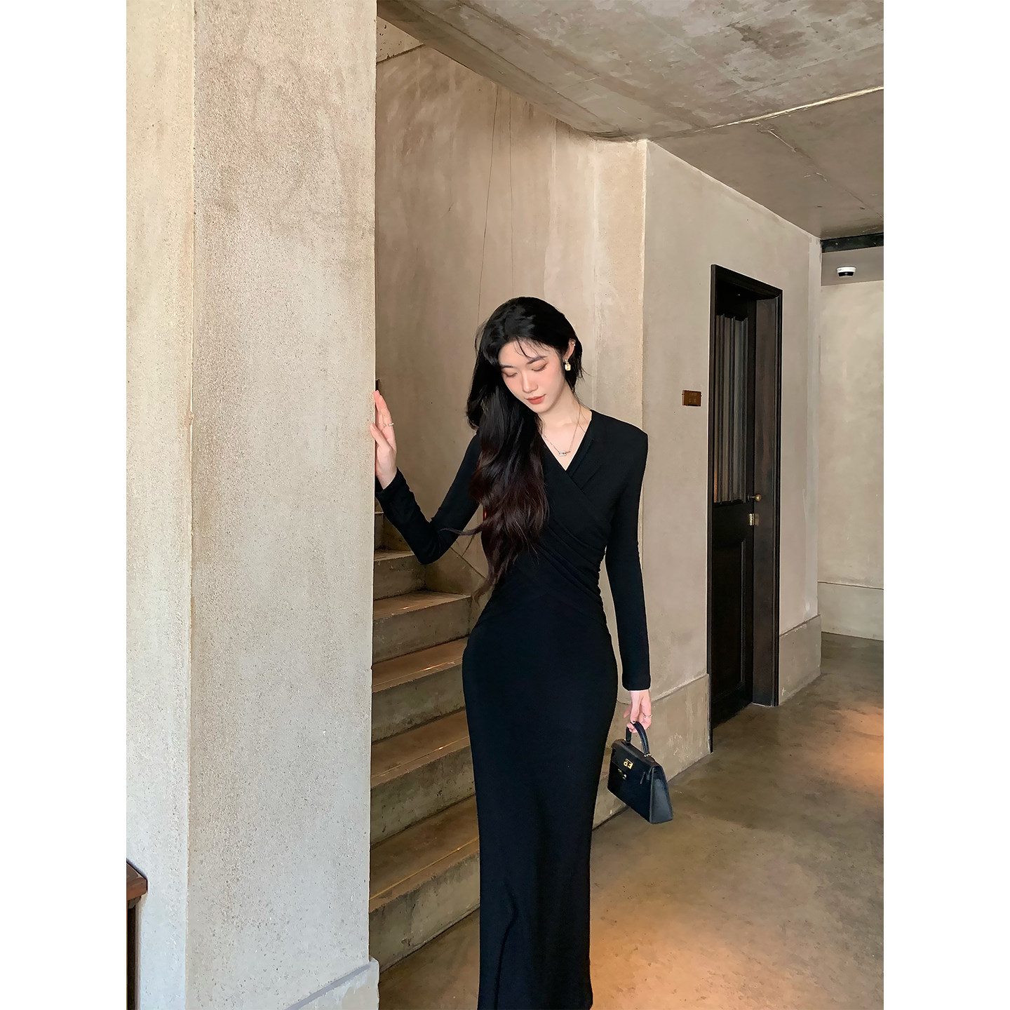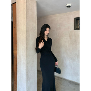 内搭打底羊毛毛衣鱼尾裙 v领针织连衣裙修身 juanjuanyee 女神裙