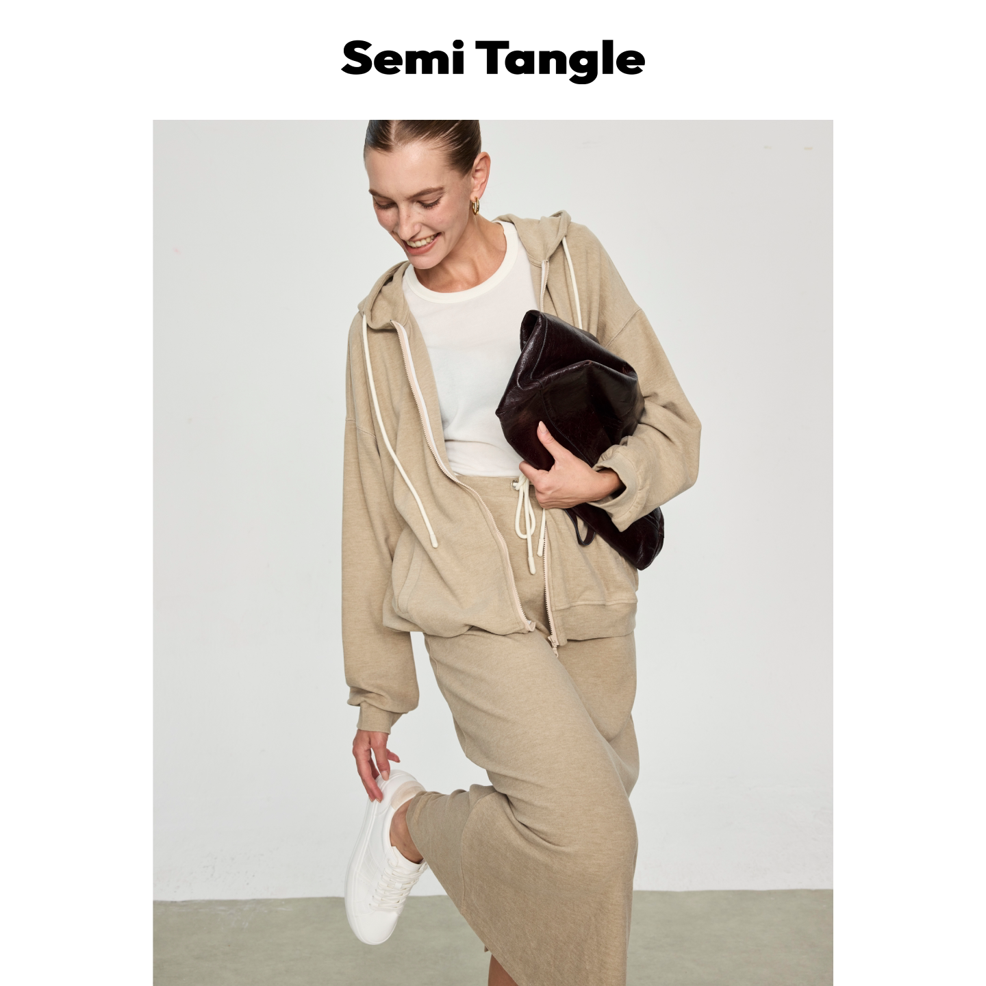 柔软丝绒感运动连帽卫衣半裙套装 Semi Tangle「Prea」26春夏新品