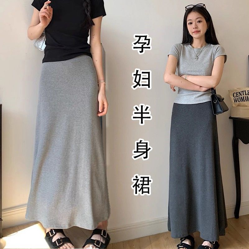 显瘦包臀裙长款 垂坠感修身 裙 春秋宽松可调节半身裙薄款 欧范孕妇装