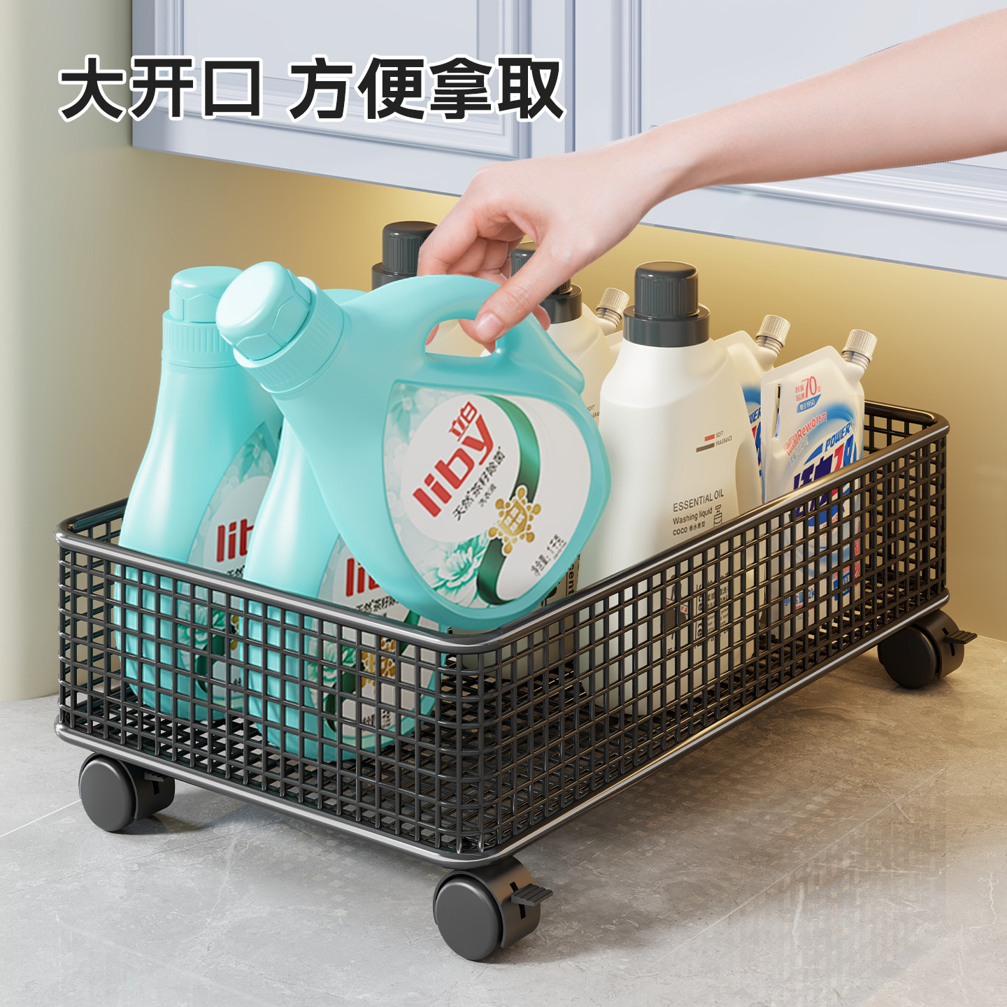 卫生间置物架浴室橱柜下小推车洗衣液洗衣粉收纳筐洗漱台下储物篮