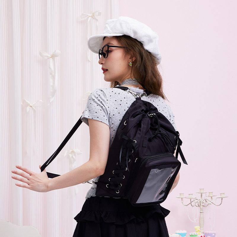 WEGO丝带束口娃包后背包双肩痛包二次元 少女手提拎包谷子痛文化
