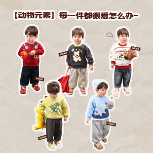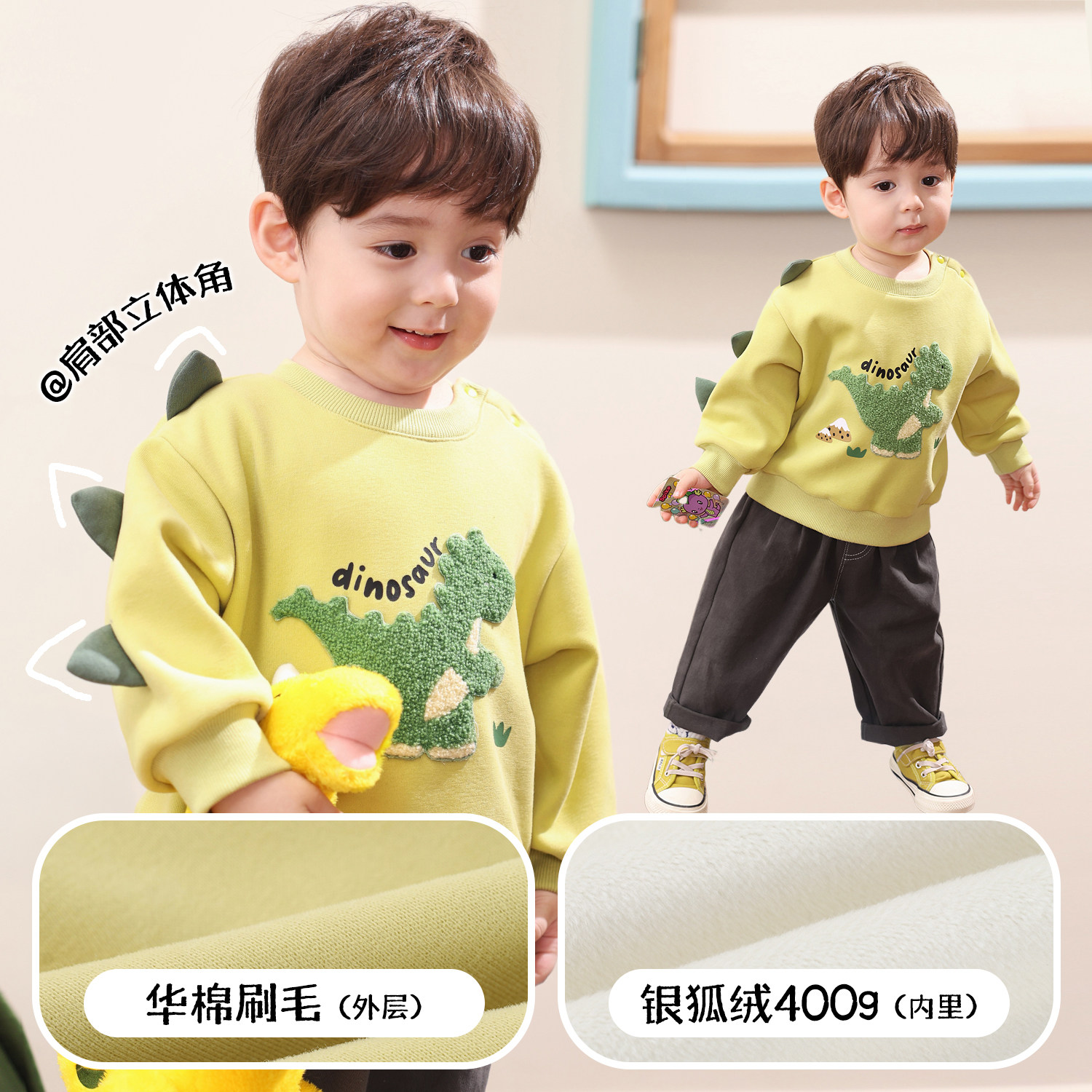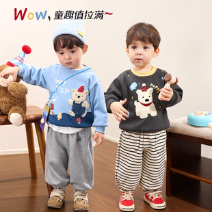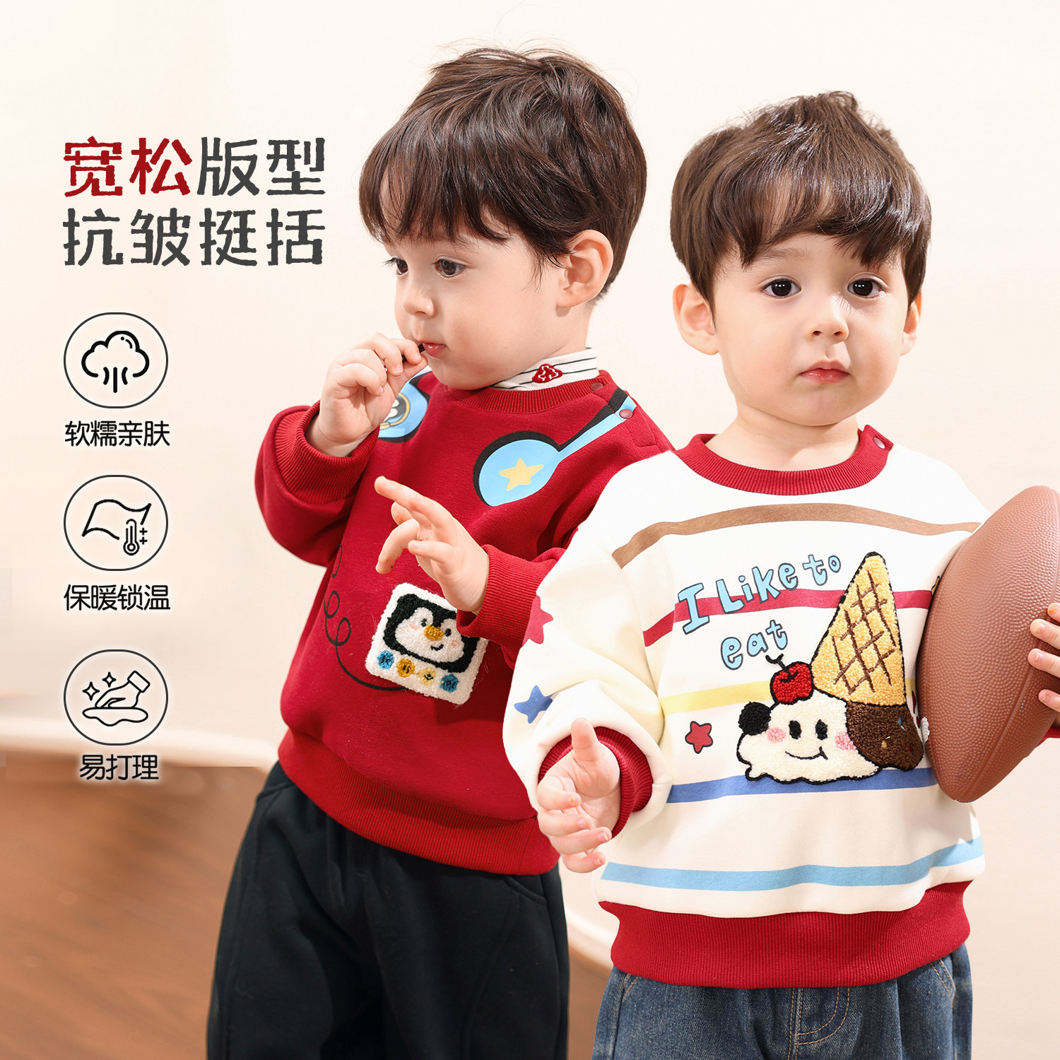 帅气婴儿毛巾绣上衣 加绒卫衣2025新款 小O爸男婴童 宝宝秋冬季