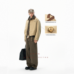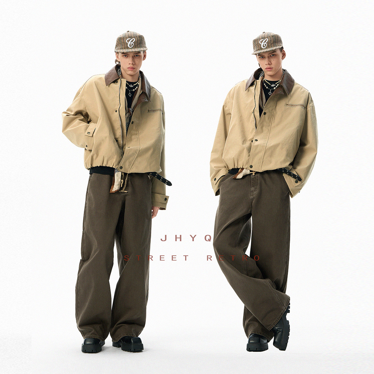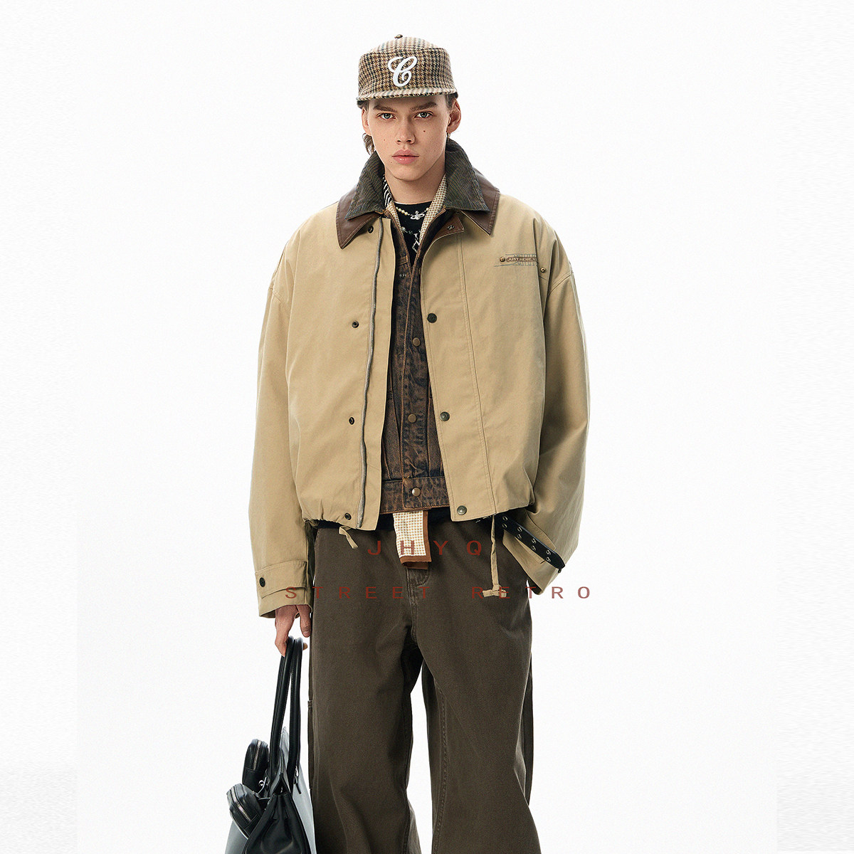 翻领短款 外套男春秋感美式 夹克 复古拼皮工装 JHYQ净化眼球美式