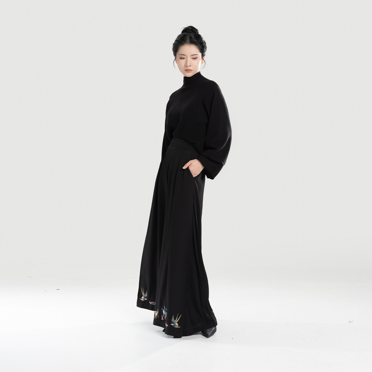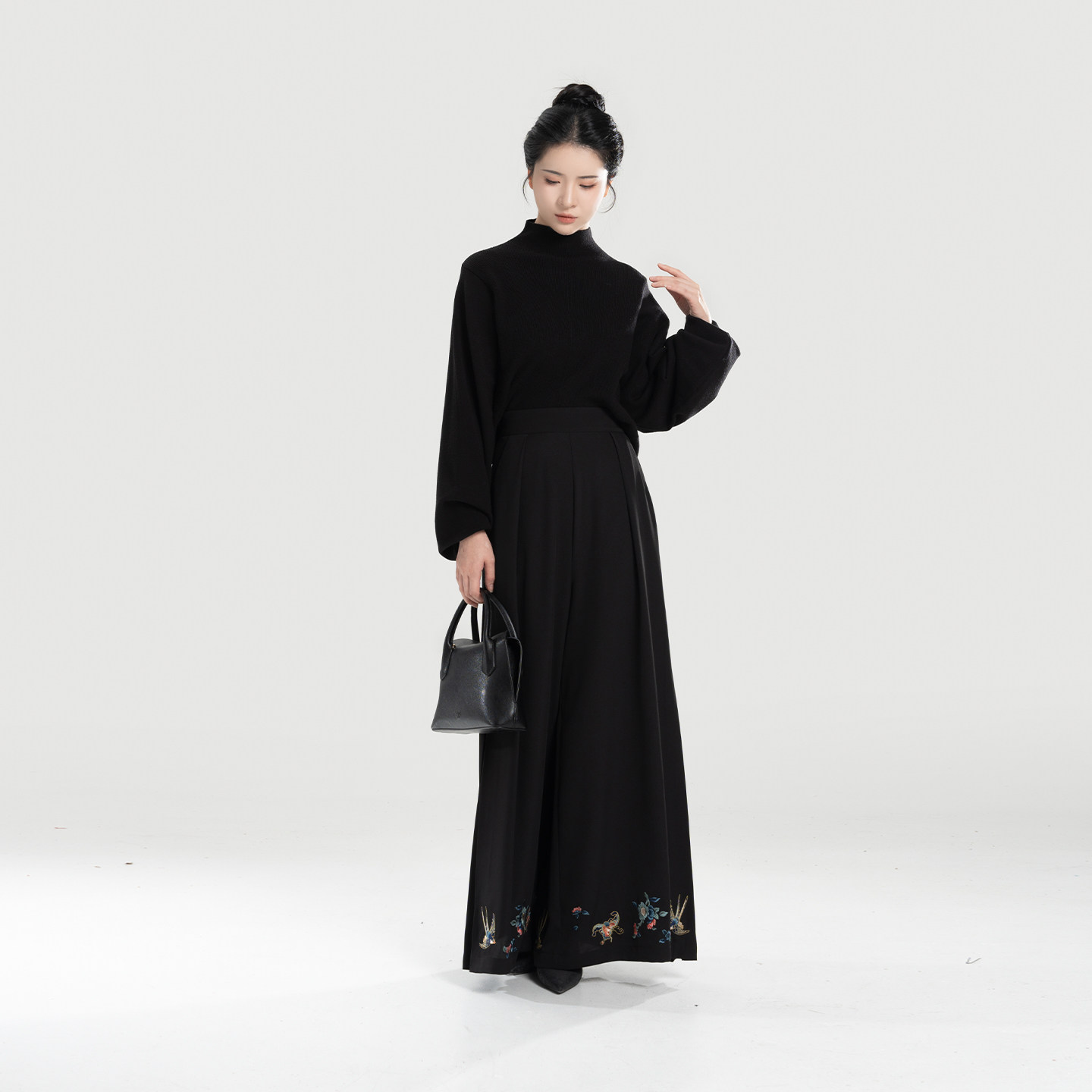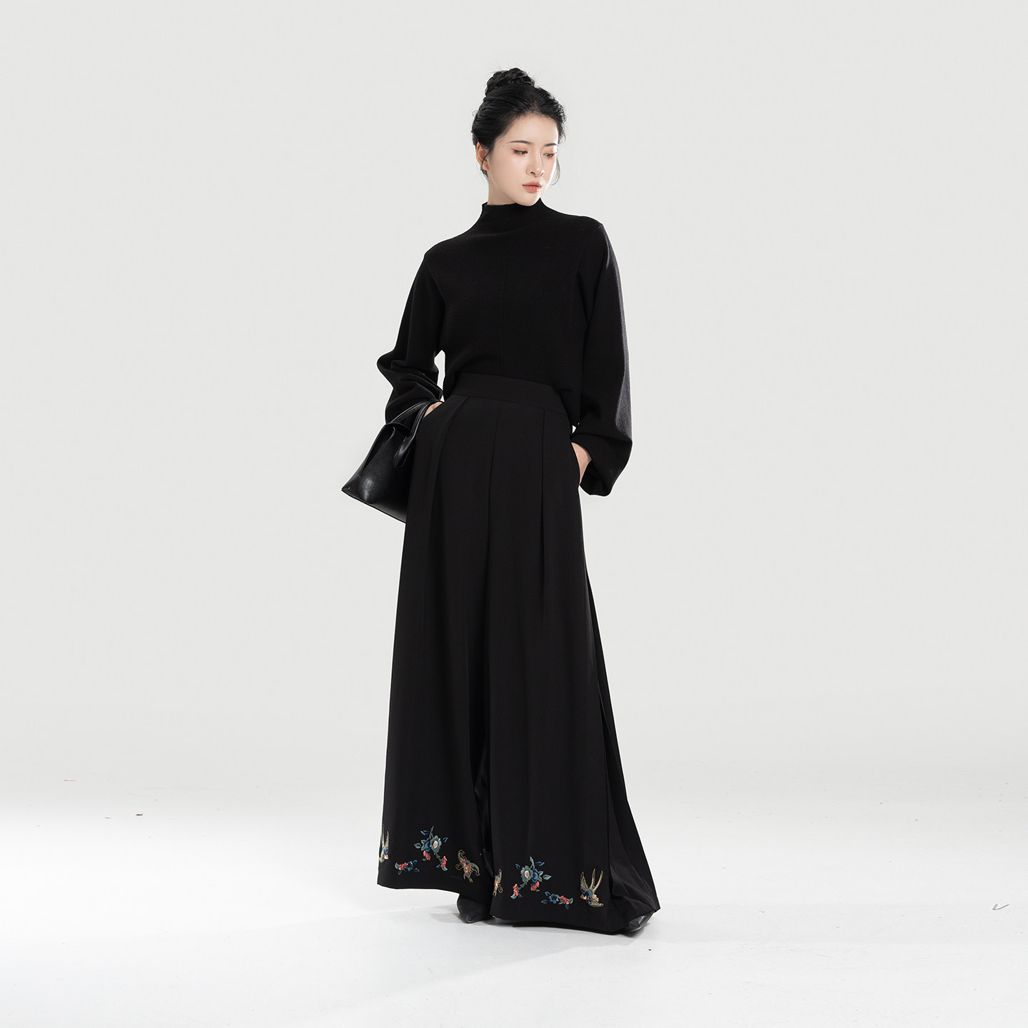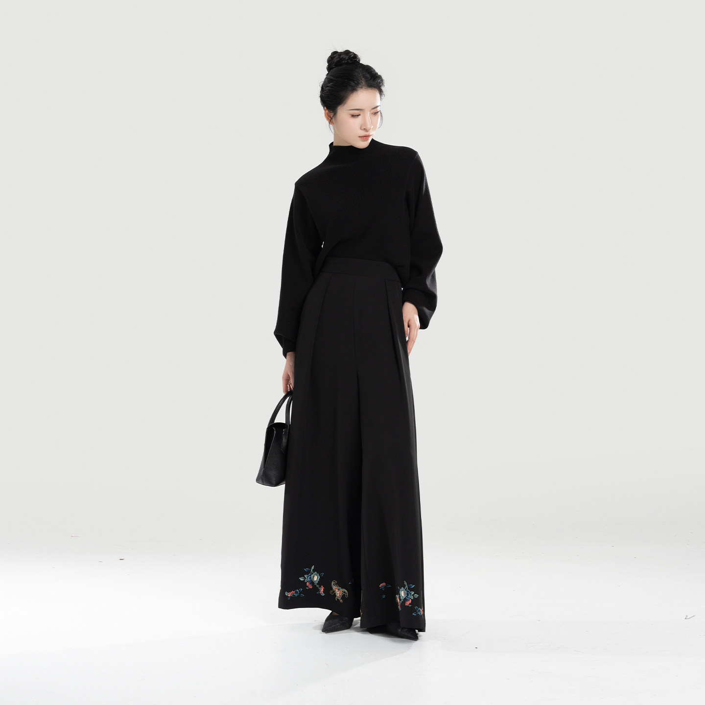 静澜 侧褶绣花阔腿裤 汉元 百搭半高领毛衣改良宋裤 素弓袋袖 织造司