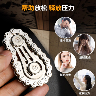 减压手指链齿飞轮链条指尖陀螺无聊解压神器齿轮联动机械金属玩具