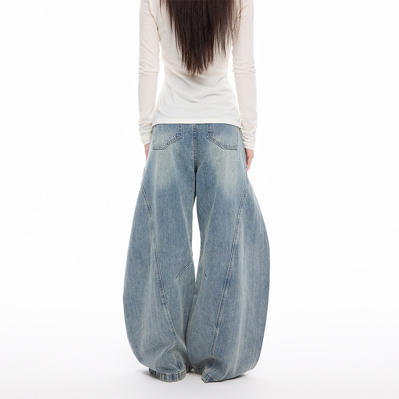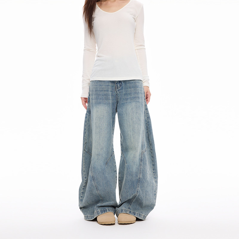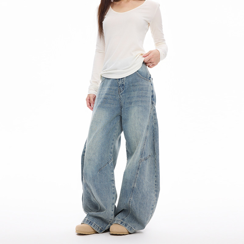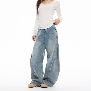 阔腿休闲百搭潮男女 水洗复古结构弯刀牛仔裤 COLDSTONE 美式