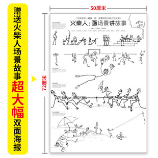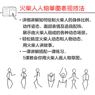 动作姿势表情道具配饰各种动态场景 步骤简洁清晰明确 绘画入门新手适用草图动态速写画漫画分镜 火柴人人物草图表现技法 当当网