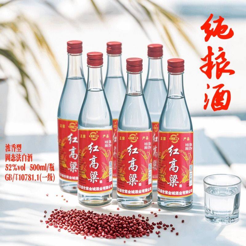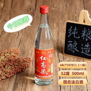 52度红高粱酒酒浓香型高度白酒正品 纯粮食酒口粮酒固态法高粱酒