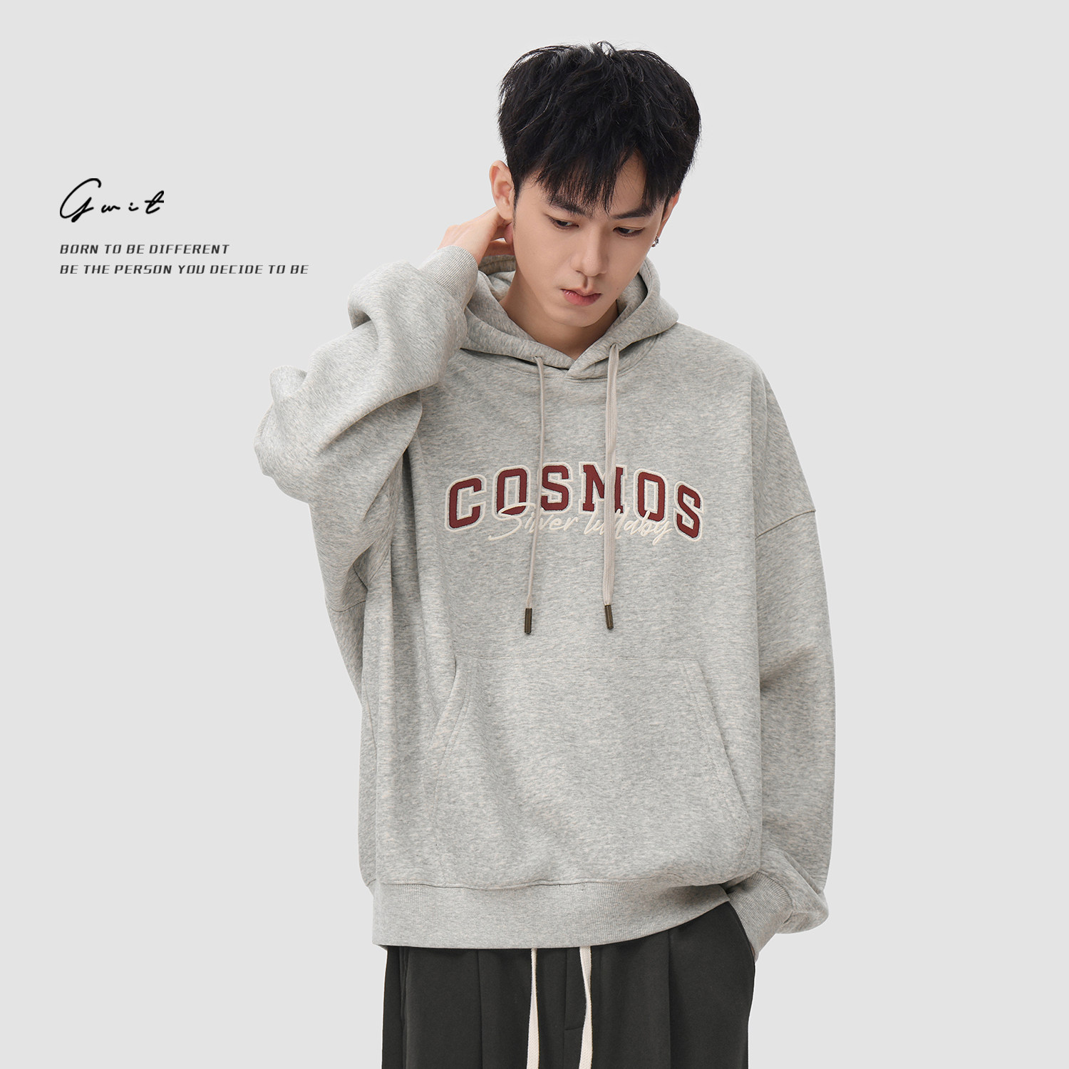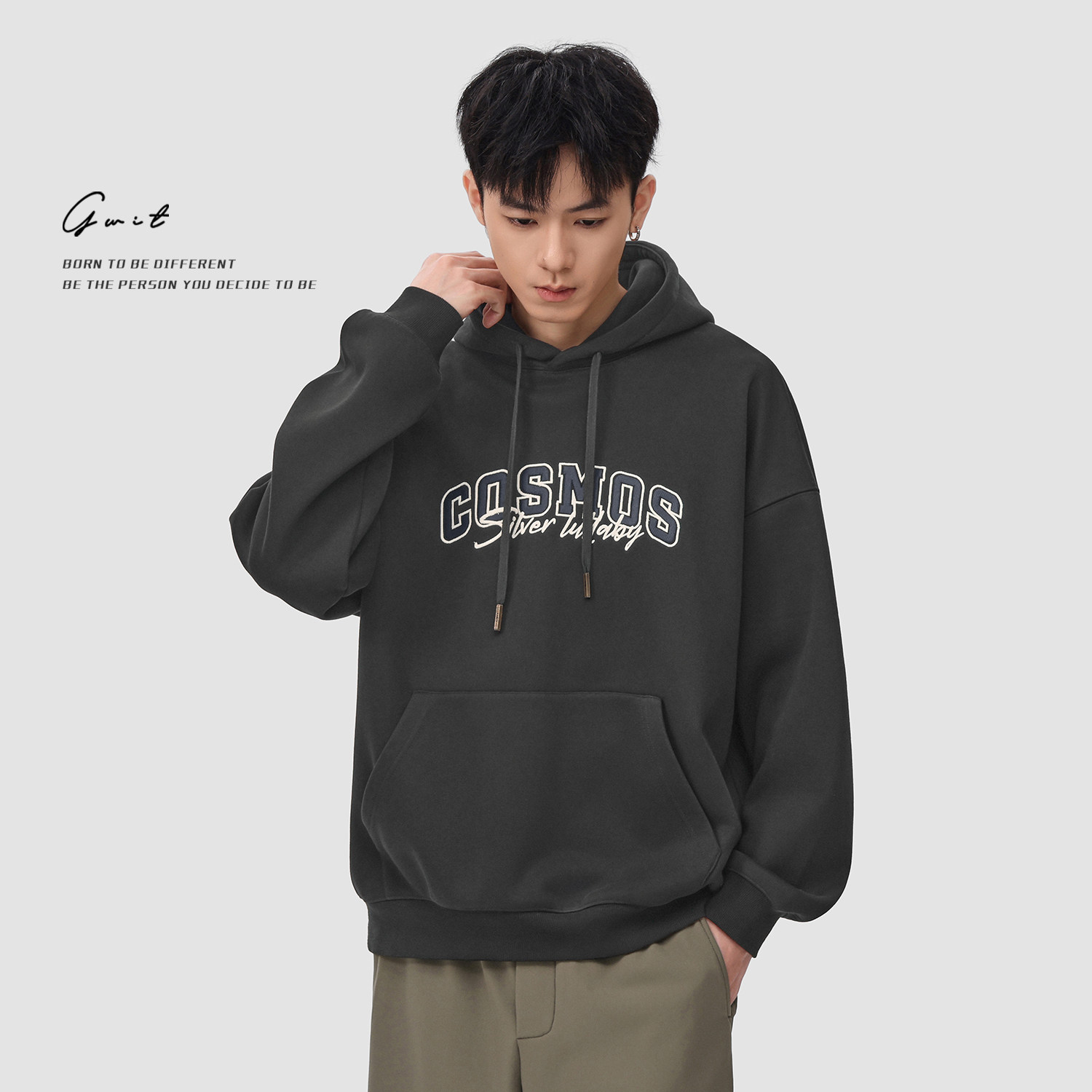 加绒加厚连帽卫衣男 保暖套头打底帽衫 GWIT 重磅复古潮牌刺绣冬季