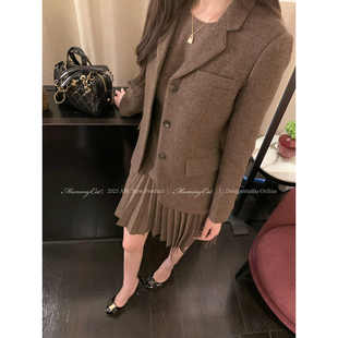 套装 MummyCat下蛋喵 秋冬50羊毛人字纹西装 25新品 可可像素
