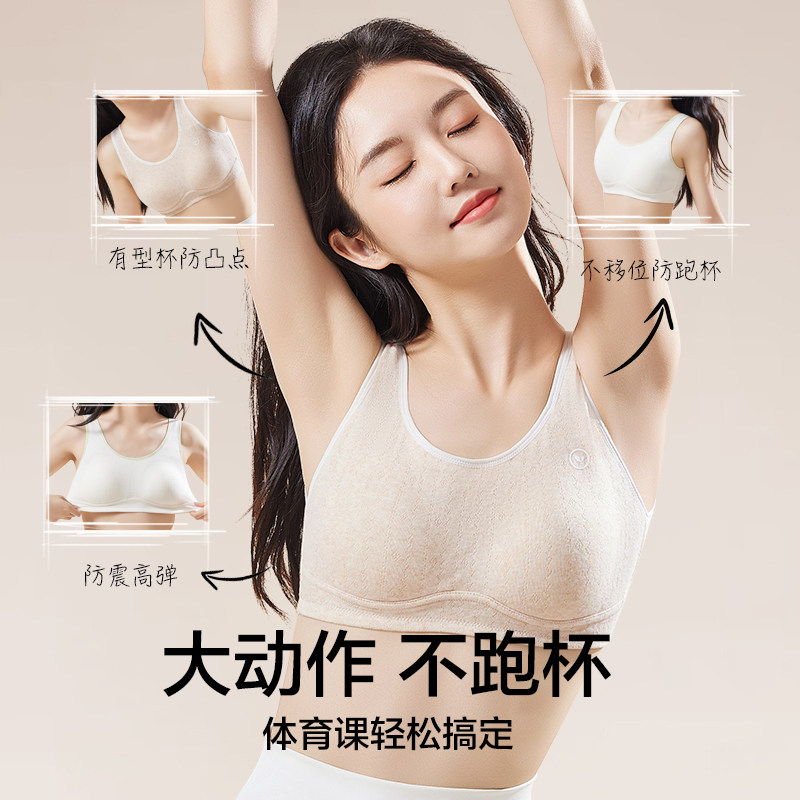 三福凉感背心新款 运动风文胸女固定杯抹胸美背细肩带裹胸吊带内衣