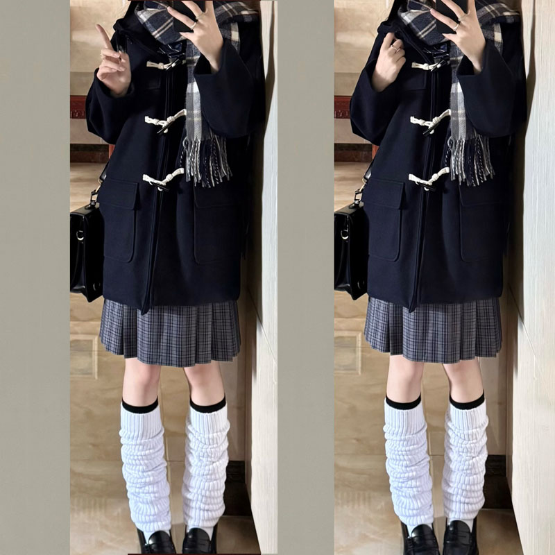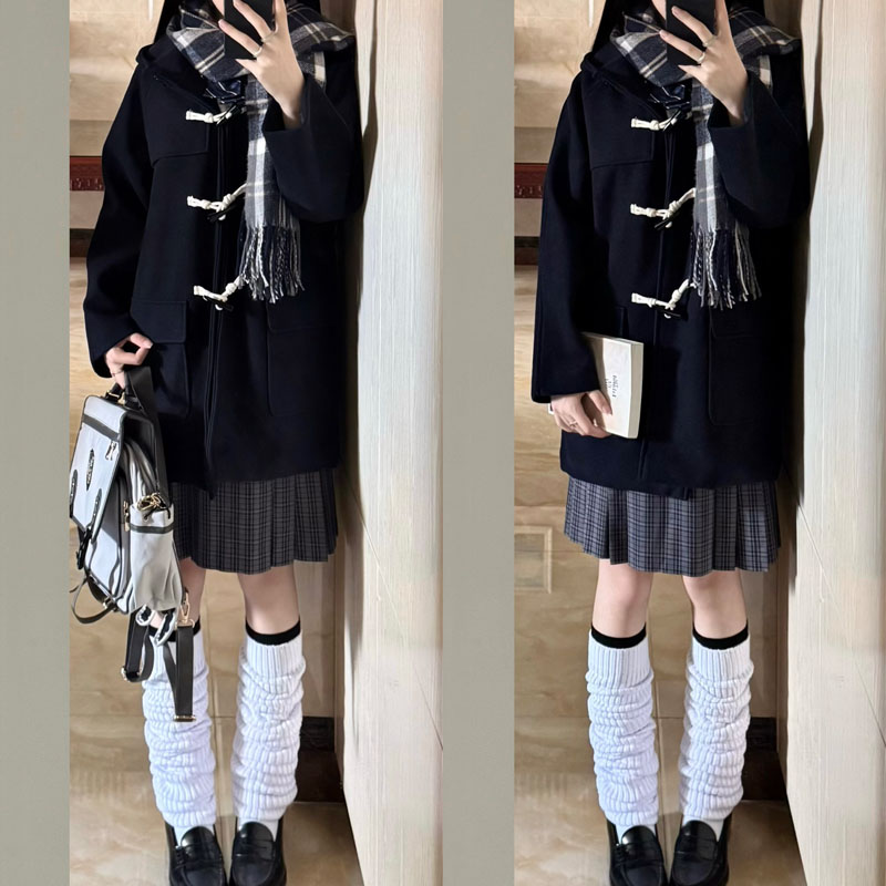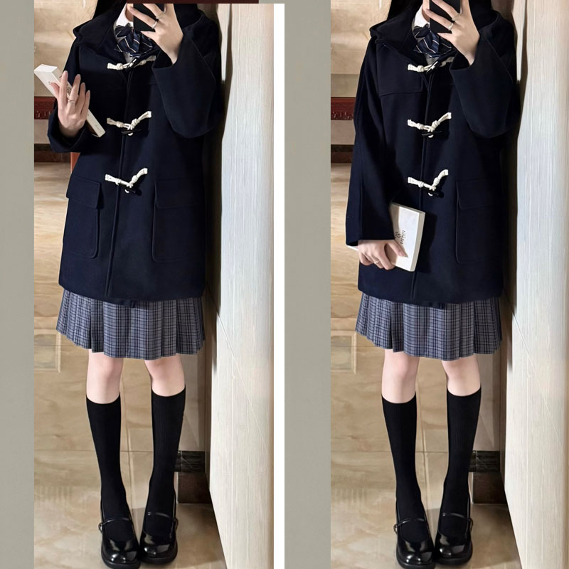 毛呢外套 jk原创日系学院风正肩牛角扣大衣加厚中长款 阿车家 大码