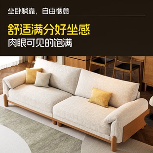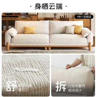 原木风实木布艺沙发2025新款 白蜡木小户型客厅豆腐块奶油沙发 日式
