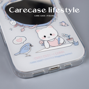 镜中萌游镜面手机壳 适用于iPhone16 可爱涂鸦 童趣风少女心 pura80 LUNA联名 华为Mate60 CARECASE ProMax