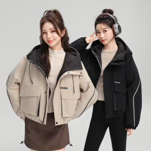 羽绒服两面穿小个子显高 韩版 雪中飞2026春新款 女生短高端工装