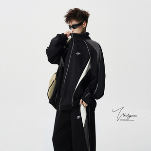 潮牌垂感运动卫裤 V37美式 男秋季 卫衣套装 俩件套 撞色立领休闲开衫