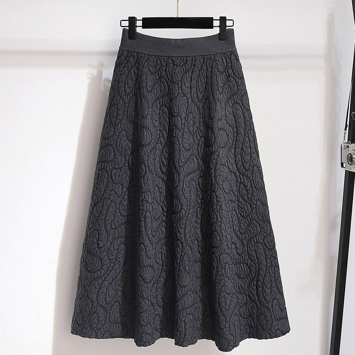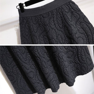 针织提花高端精致半身裙女秋冬A字蓬蓬裙长款 高腰半裙显瘦裙子