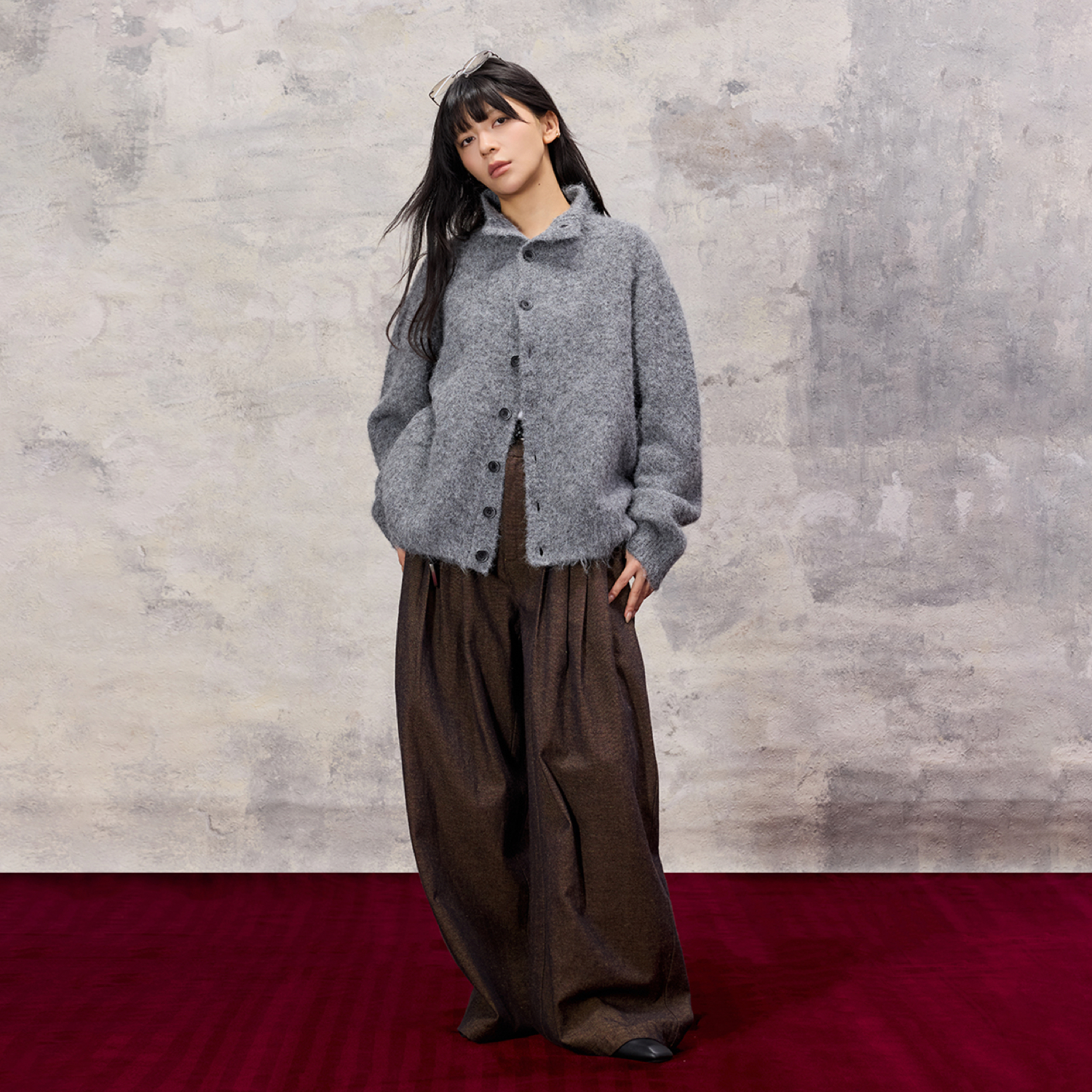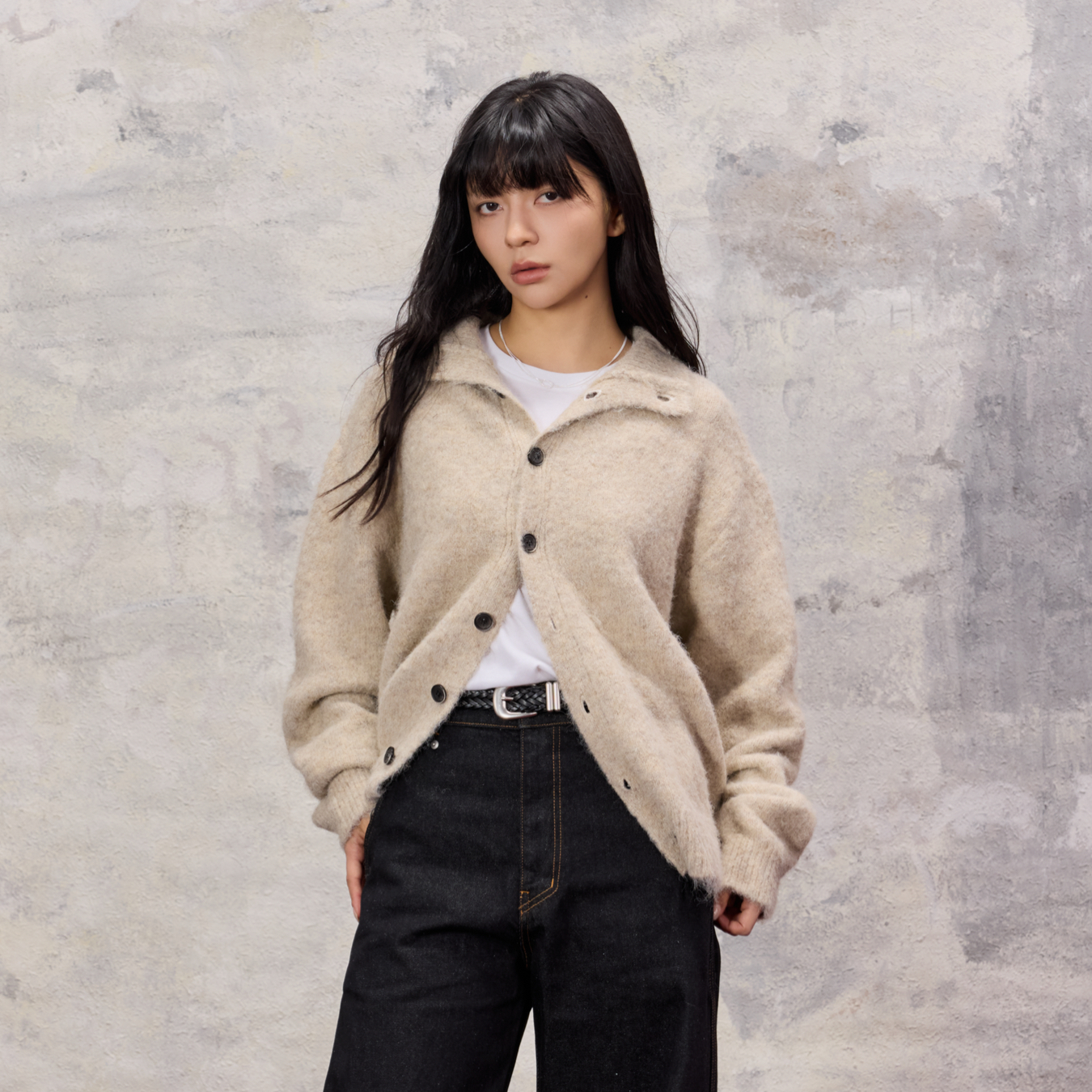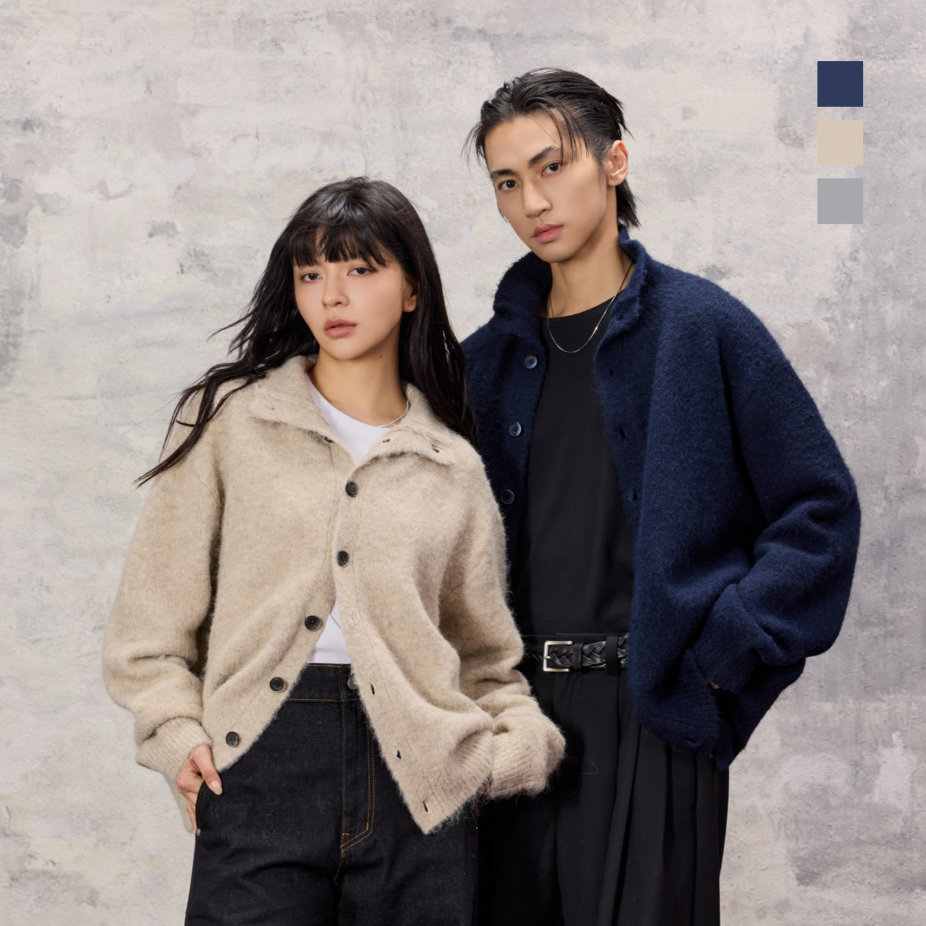 芸蚁〔舒芙蕾〕仿羊驼毛质感羊毛混纺可立领针织纽扣保暖开衫 毛衣