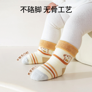婴儿袜子秋冬季 加厚保暖毛圈袜新生儿宝宝a类无骨袜男女童中筒袜