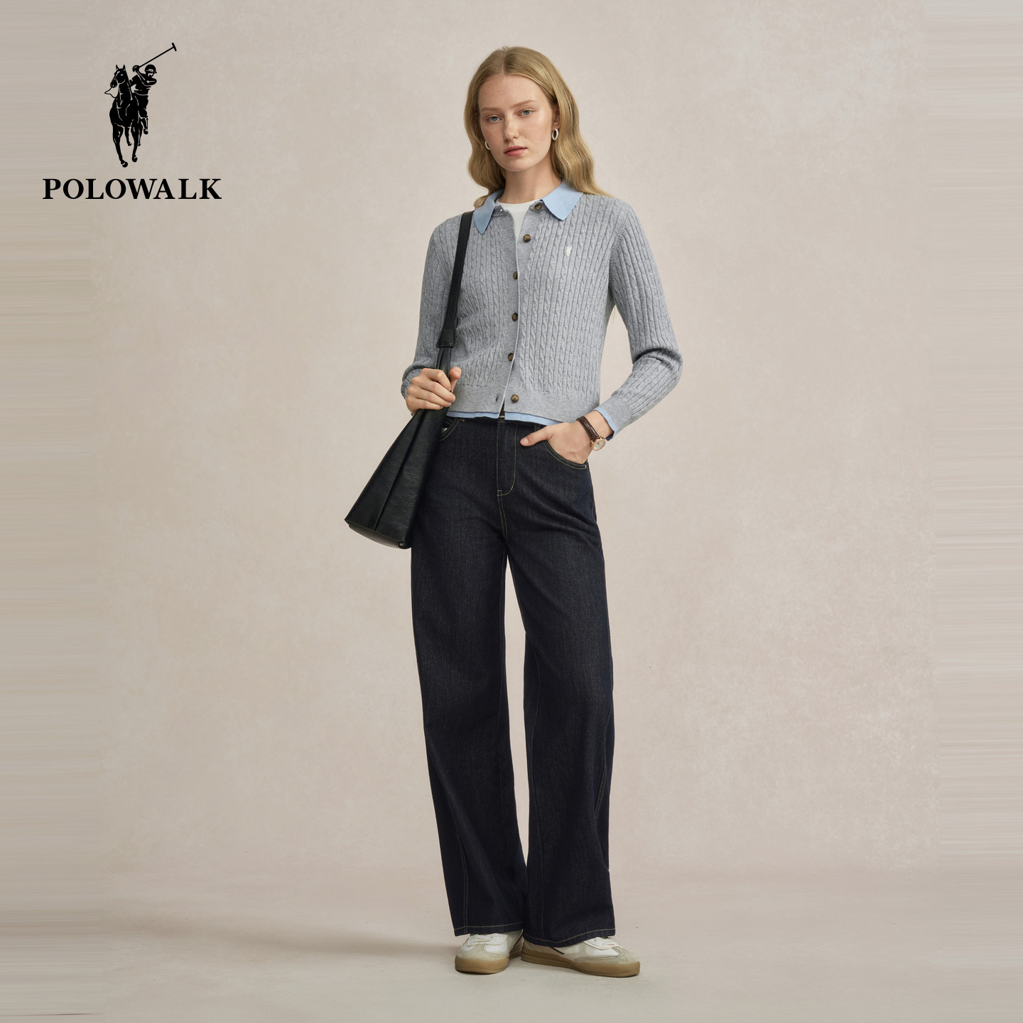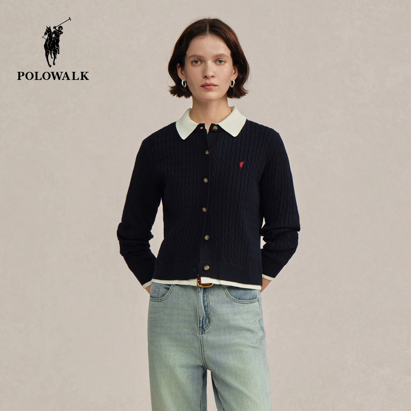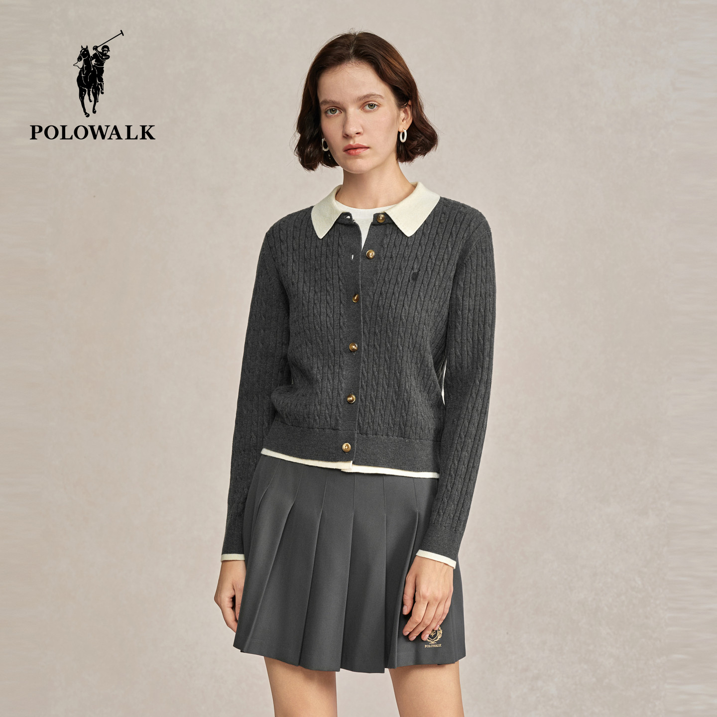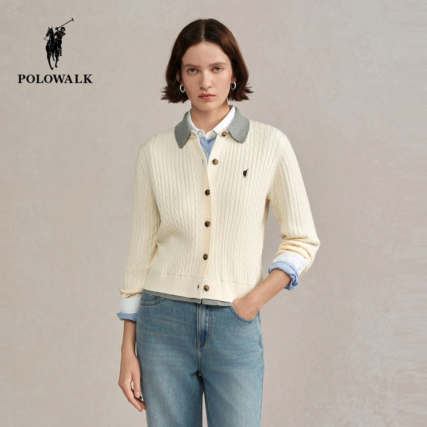 长袖 百搭优雅显瘦绞花针织开衫 针织衫 新品 女 2025秋季 POLOWALK女式