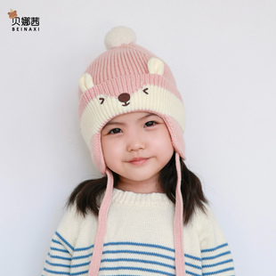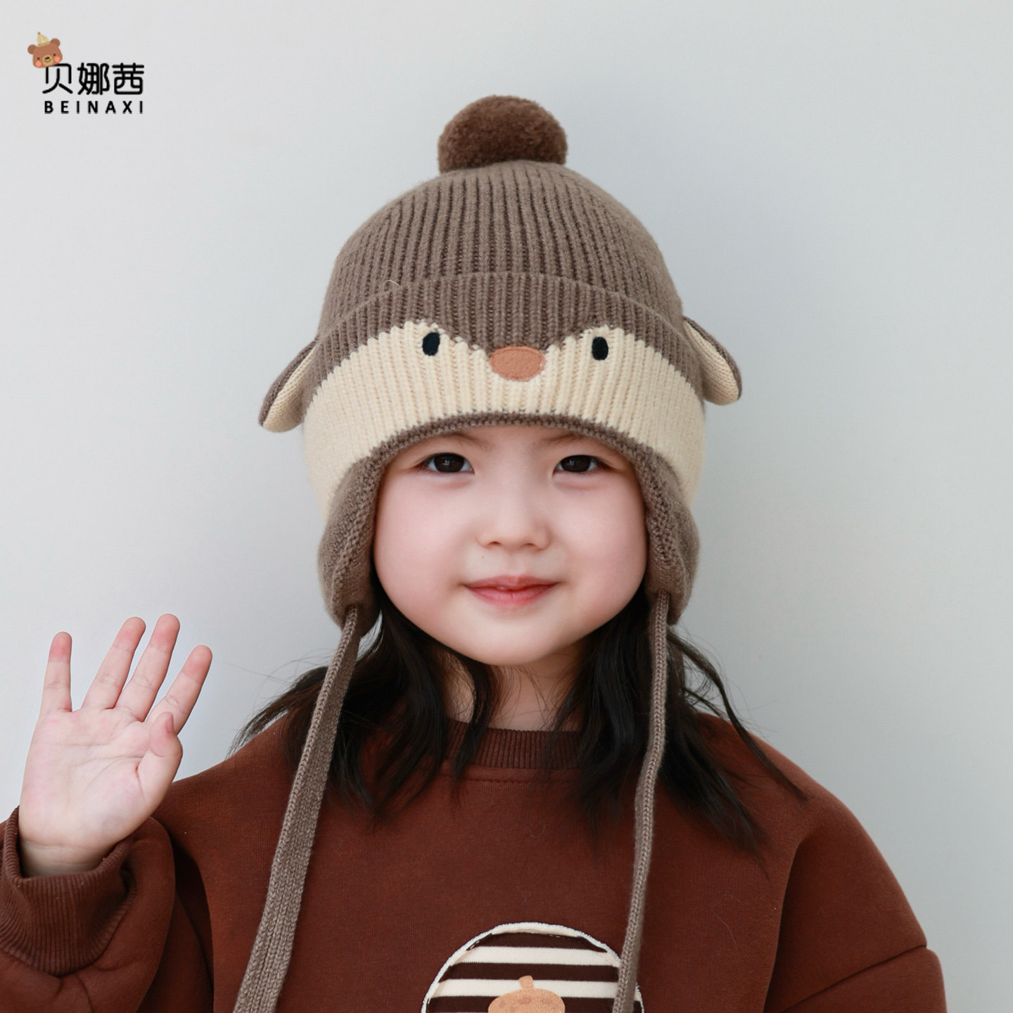 宝宝帽子秋冬季 毛绒帽可爱超萌卡通女童护耳帽加厚保暖儿童针织帽