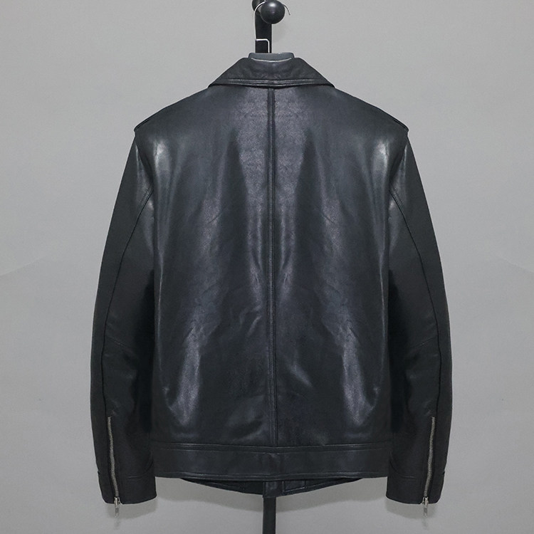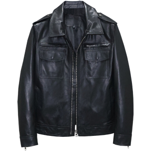 夹克巫 青年翻领复古工装 无涂重洗植鞣头层绵羊真皮皮衣男修身 短款