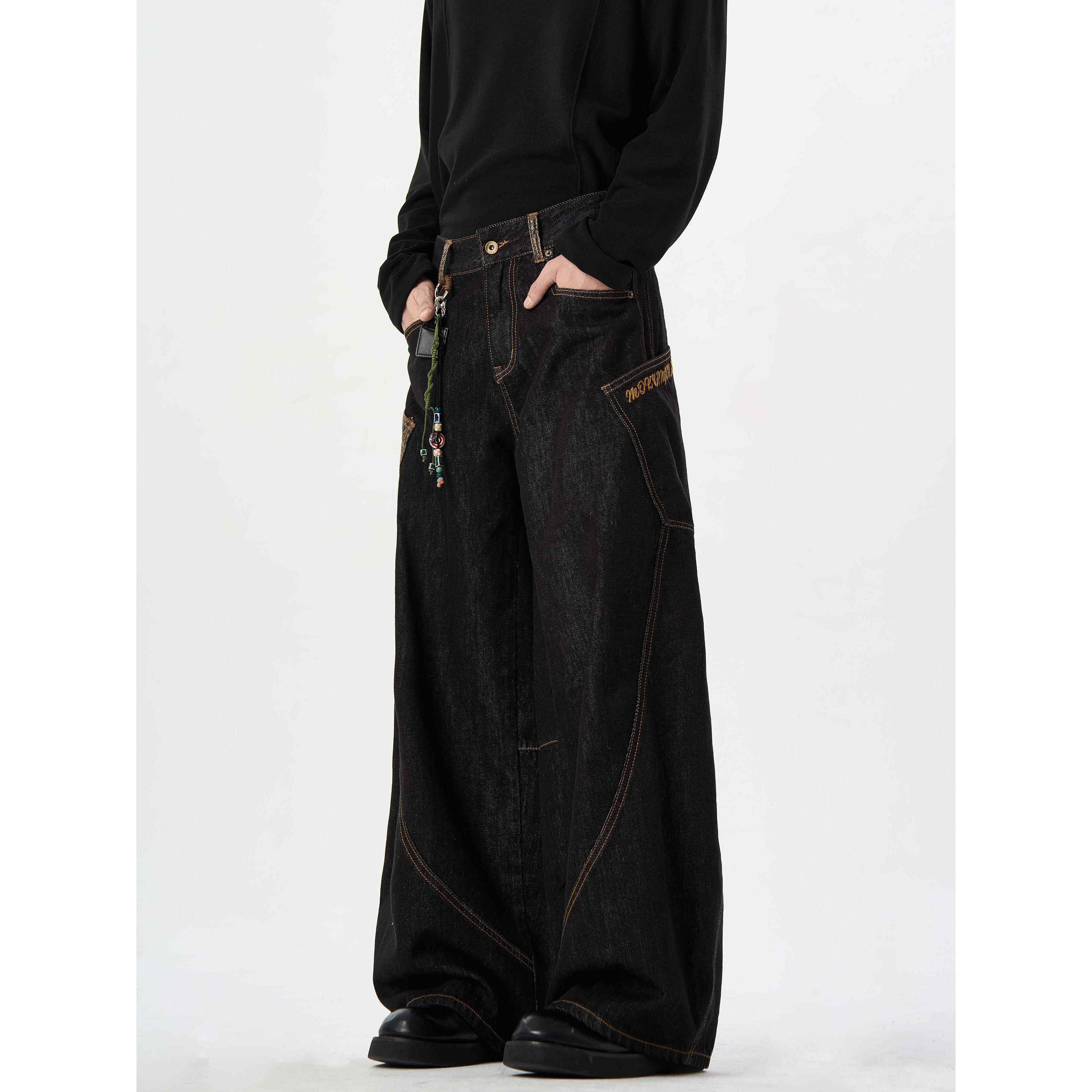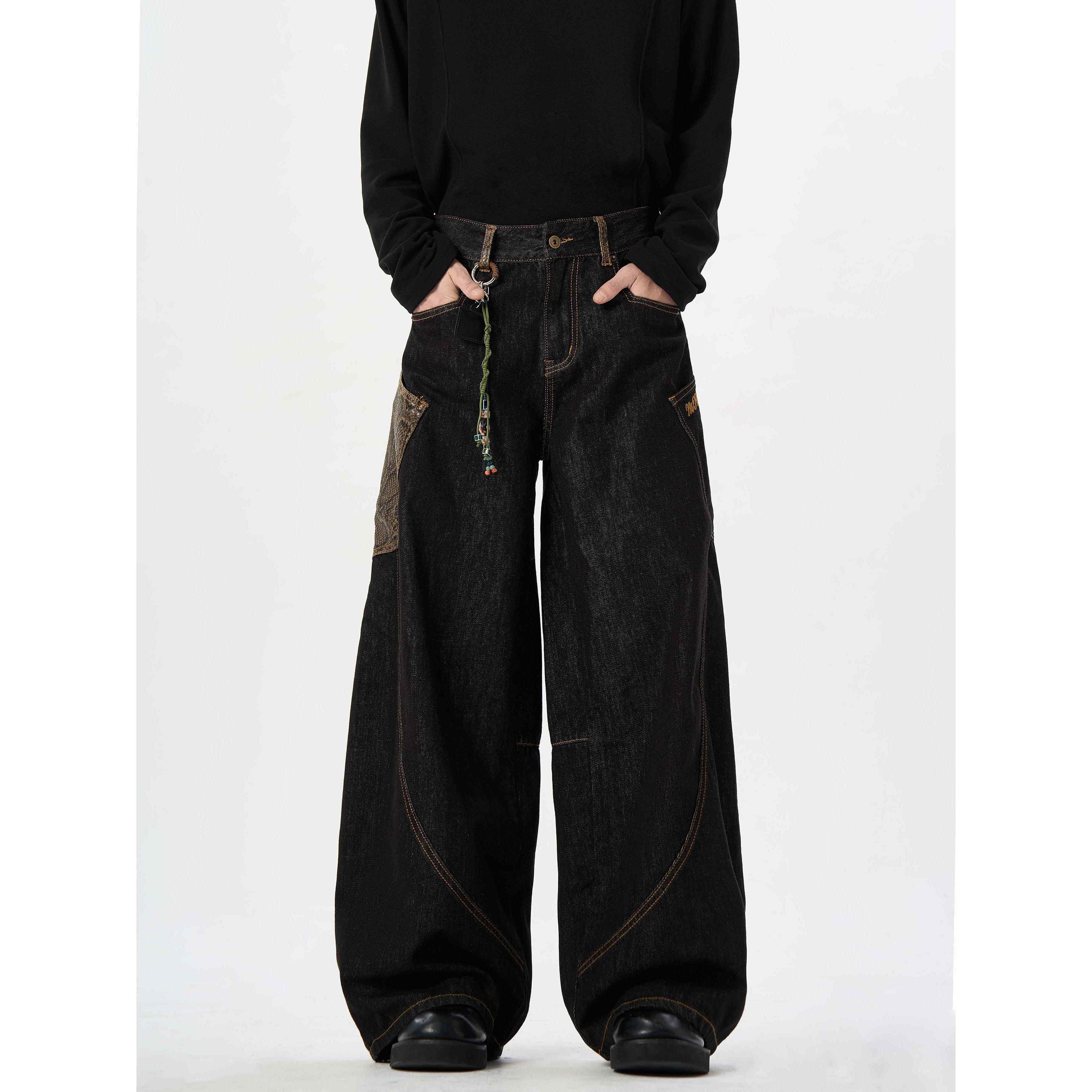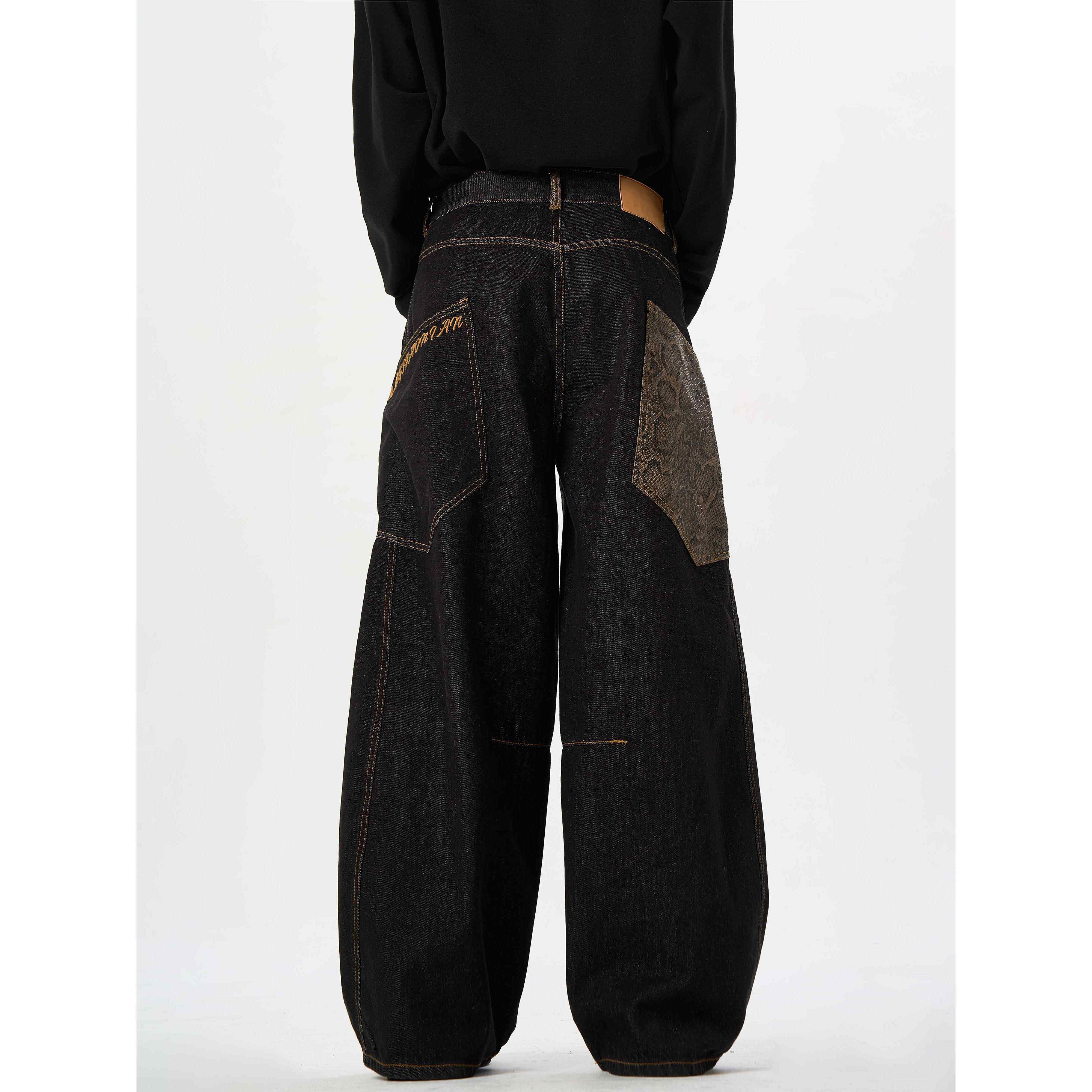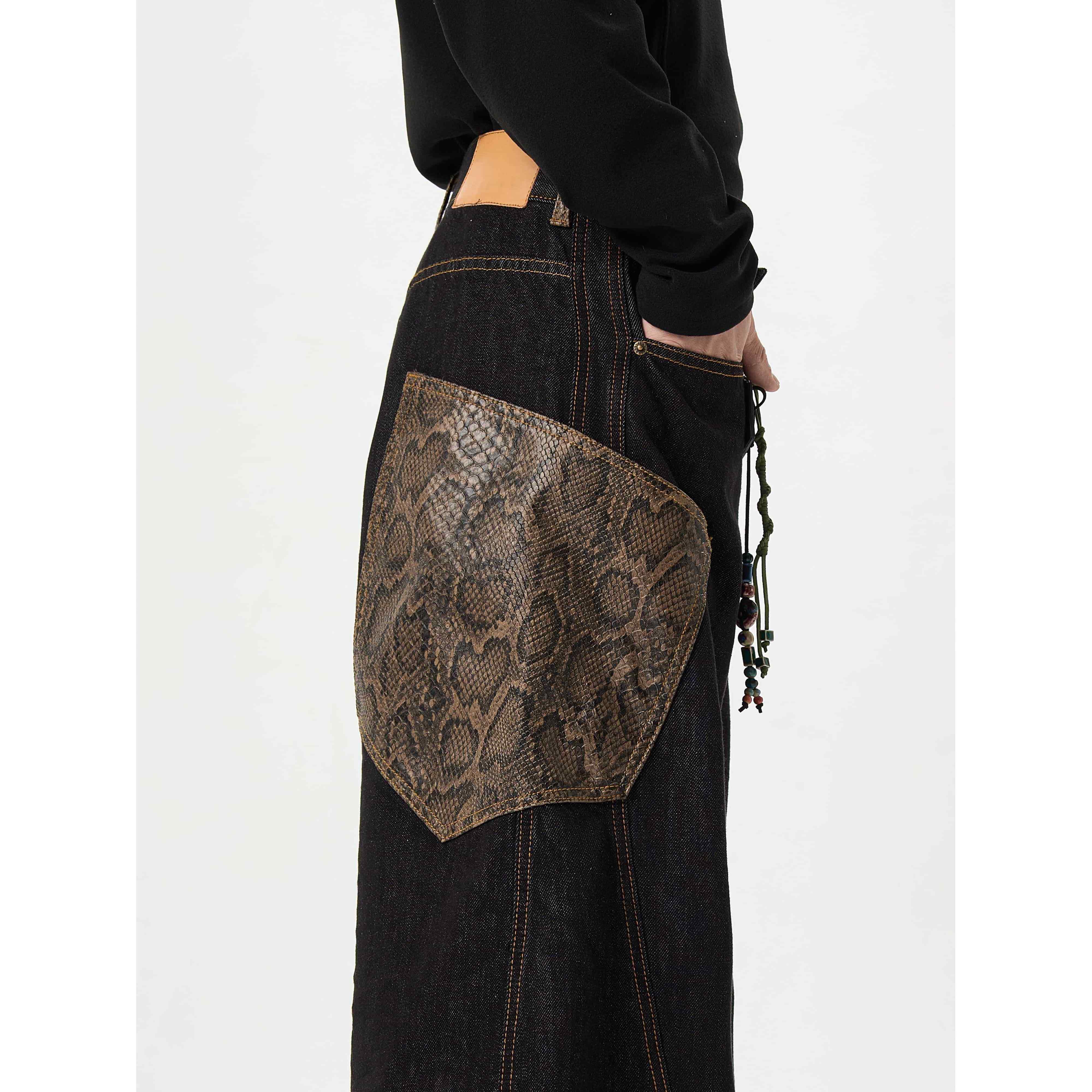 ME蛇年限定 阔腿男女裤 原牛 弯刀蟒黑色牛仔裤 子 蛇皮裤 MAX