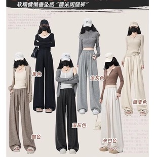 运动阔腿裤 深灰色糯米裤 垂感宽松显瘦休闲裤 高腰窄版 子 女2025新款
