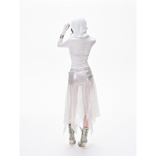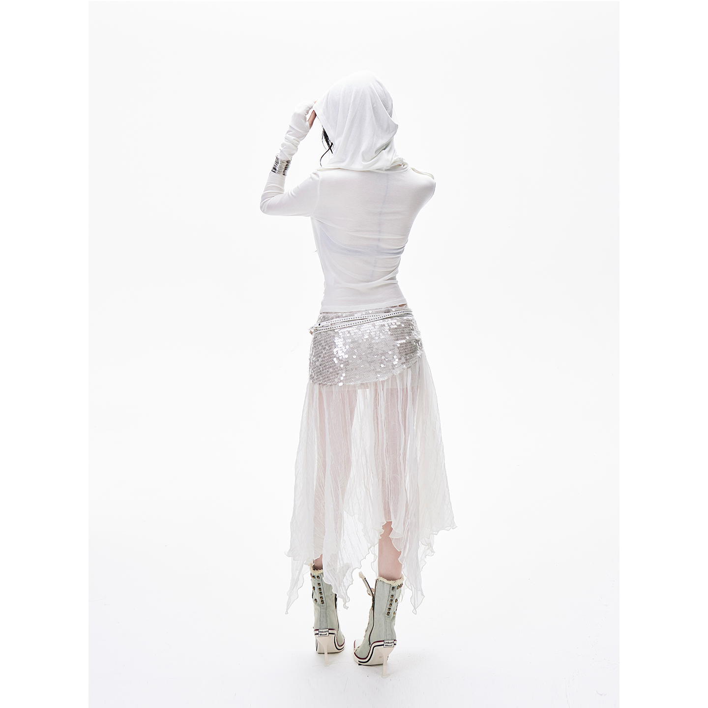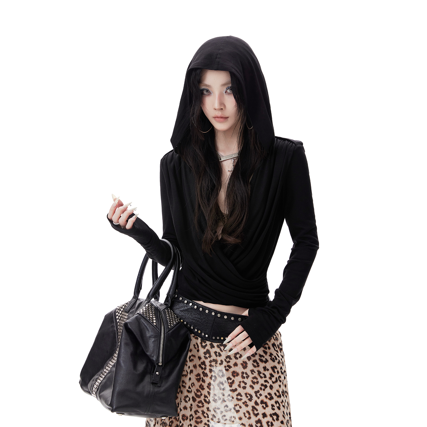纯欲辣妹交叉荡领连帽T恤女收腰显瘦外穿长袖 0120 上衣 Common