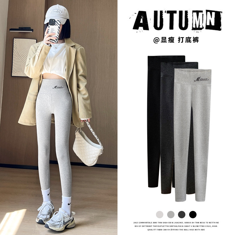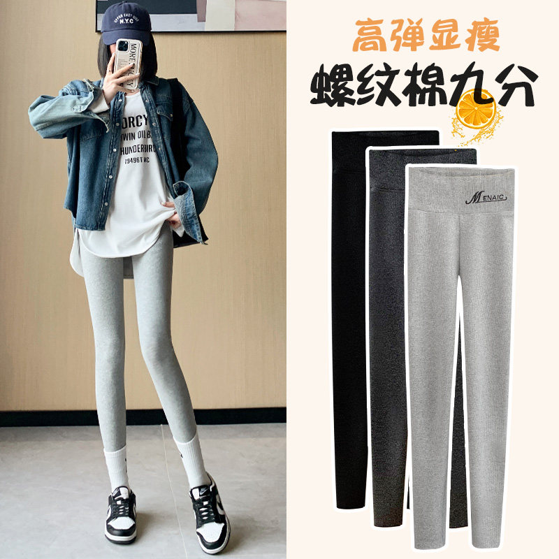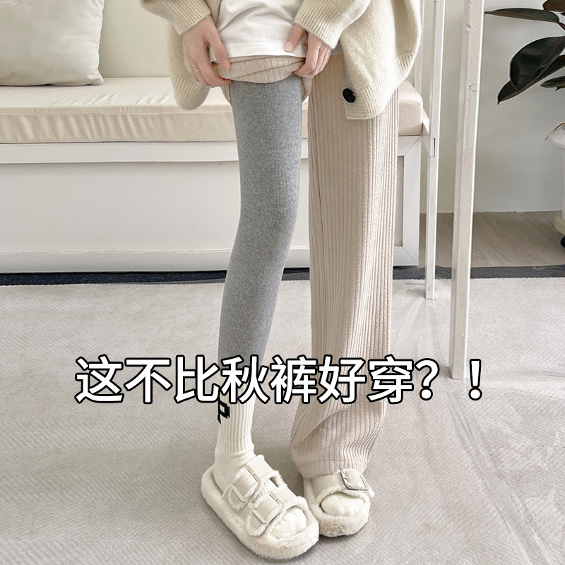 内穿秋裤 竖纹紧身黑色打底裤 弹力螺纹显瘦线裤 大码 女2025春秋新款