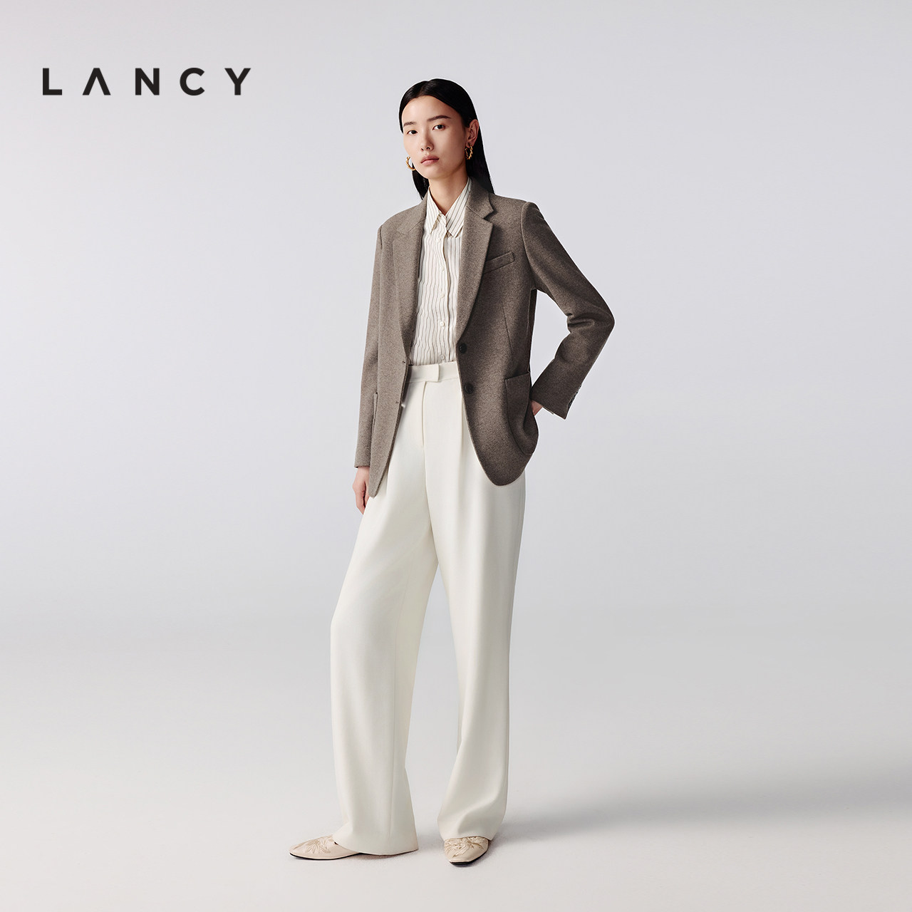 通勤英伦西装 朗姿2025冬新款 LANCY 外套平驳领职业西服女 羊毛