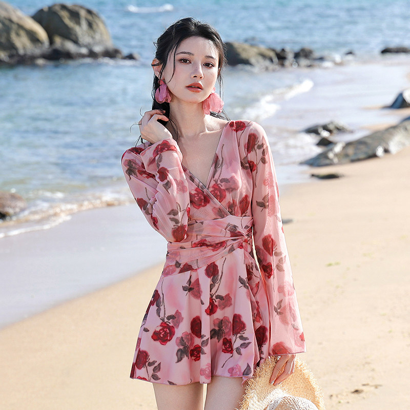 成人绝美微胖女孩遮肉胖mm大码 泳衣女款 度假风比基尼 长袖 2025新款