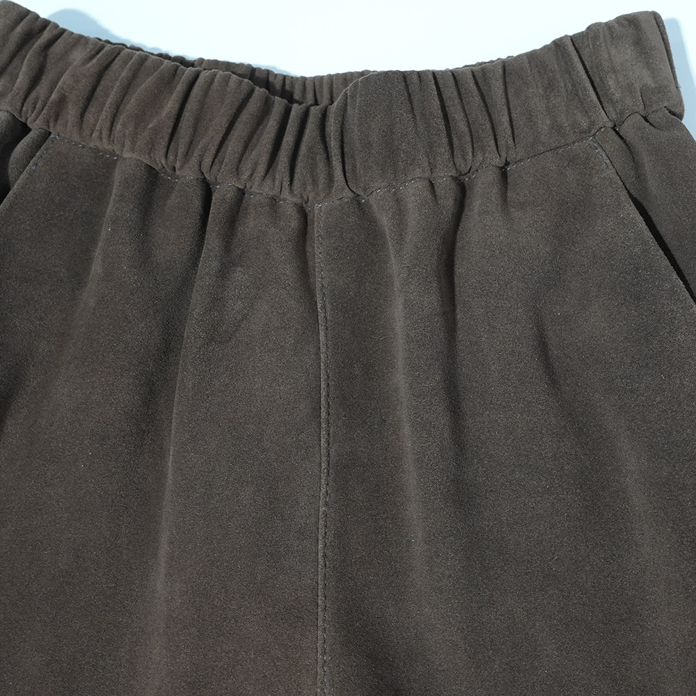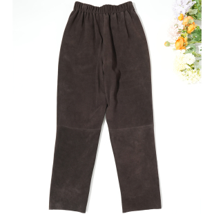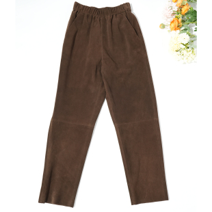 长裤 2026春季 通勤休闲修身 女士高级羊皮裤 松紧腰绒面真皮直筒裤