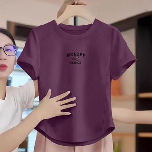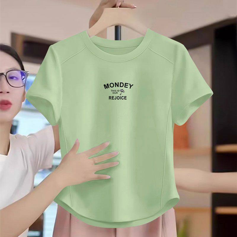 洋气减龄百搭宽松遮肉显瘦上衣服 T恤女韩版 夏季 纯棉鱼骨弧形短袖