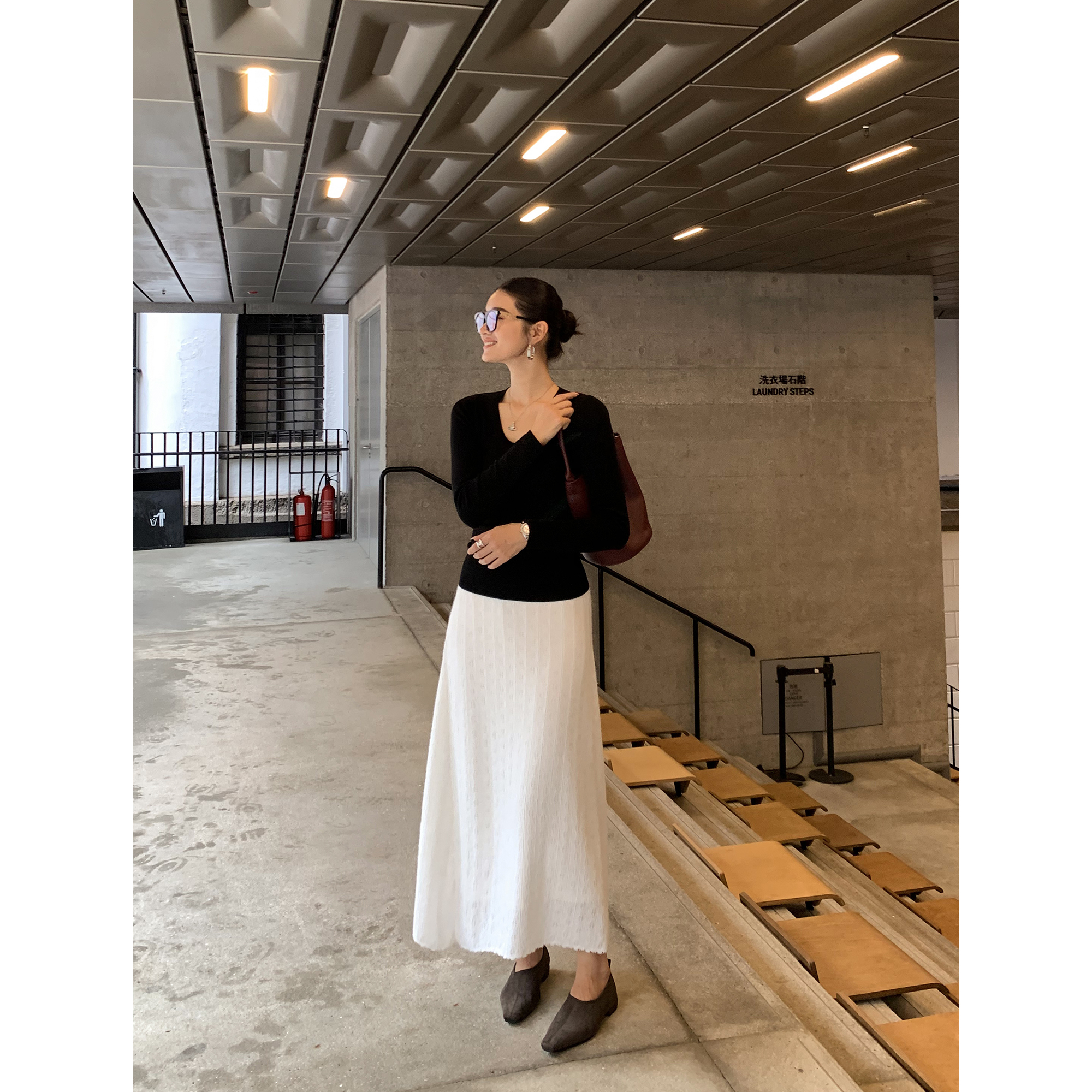 镂空绒感针织半身裙女松紧腰气质中长裙 法式 pusumede 巴黎恋人