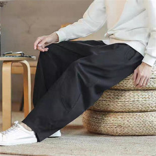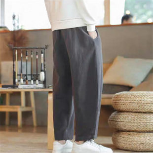 九分练功裤 中国风宽松透气休闲裤 潮流棉麻灯笼阔腿裤 25A13B4秋季