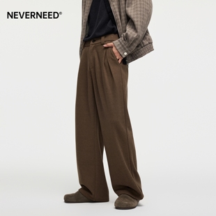 cleanfit垂感宽松A字西裤 NEVERNEED绵羊毛直筒加绒休闲长裤 男美式
