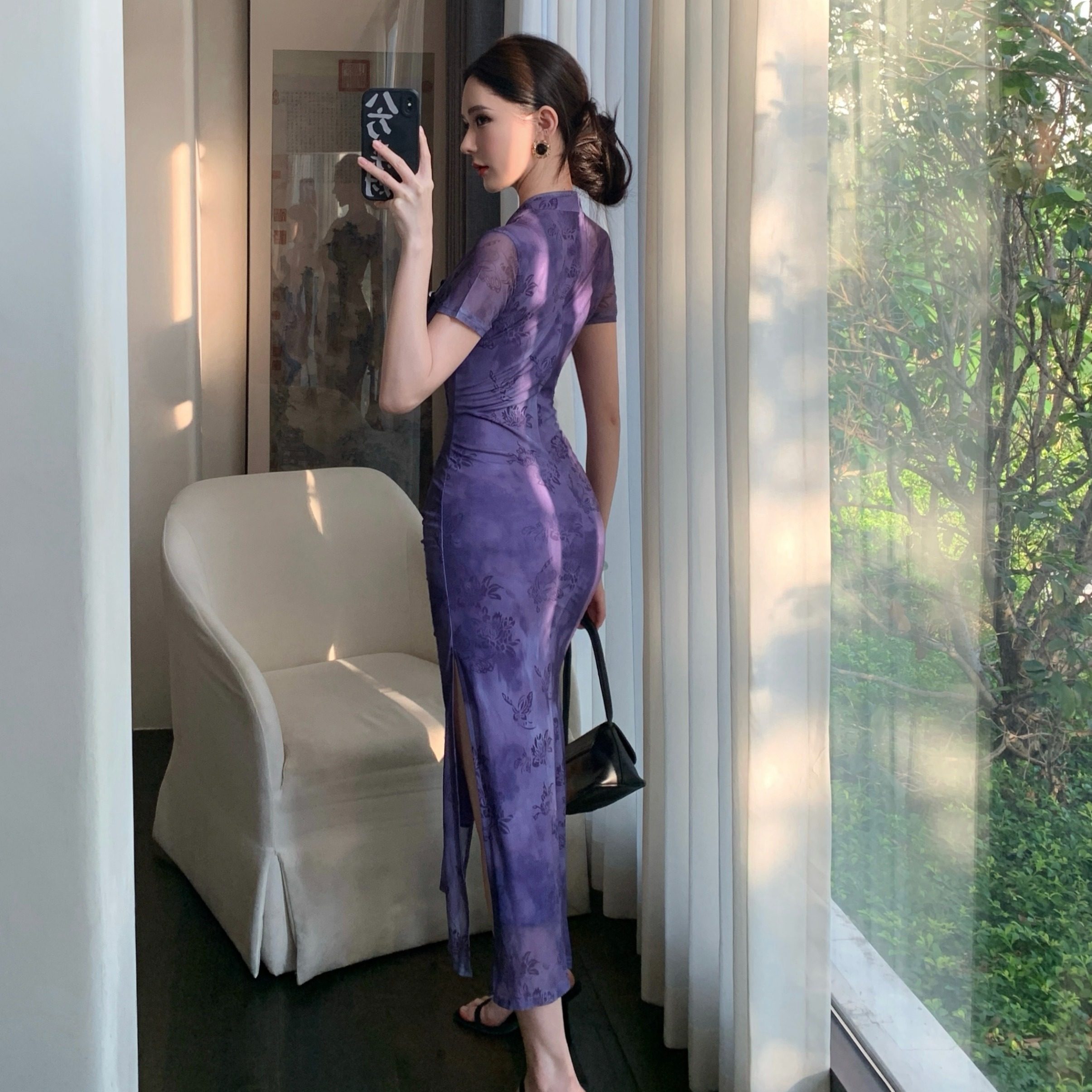 gusty新中式 开叉旗袍连衣裙御姐轻熟高级感包臀礼服 辣妹性感长款