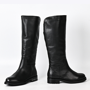 加绒女高筒骑士靴粗腿显瘦长靴 百思图25冬商场新款 自由古巴