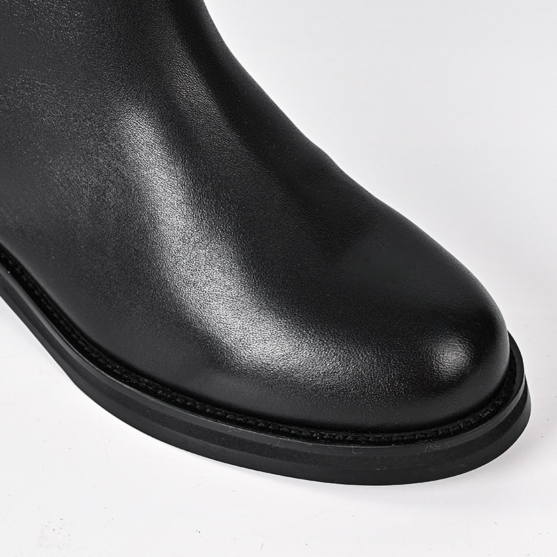 不过膝长筒靴女小个子女鞋 复古黑色马丁厚底高筒骑士靴子显瘦长靴