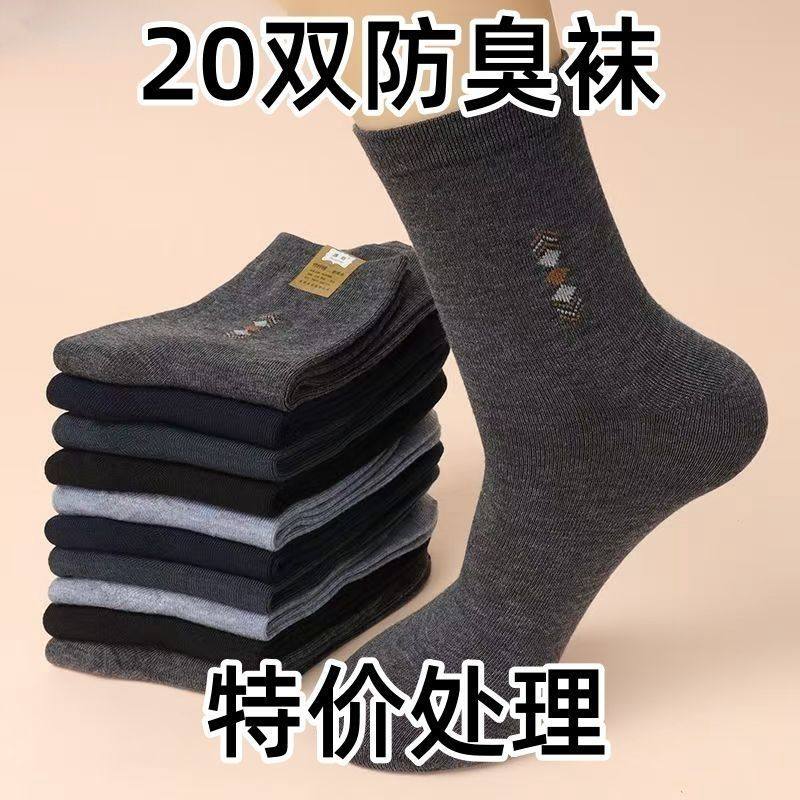 袜子男纯棉短袜春秋男款 运动袜 纯色袜商务袜7A抗菌吸汗防臭脚男士