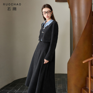 女装 领长袖 2025冬季 假两件连衣裙衬衫 高腰胖MM 新款 三彩若潮大码