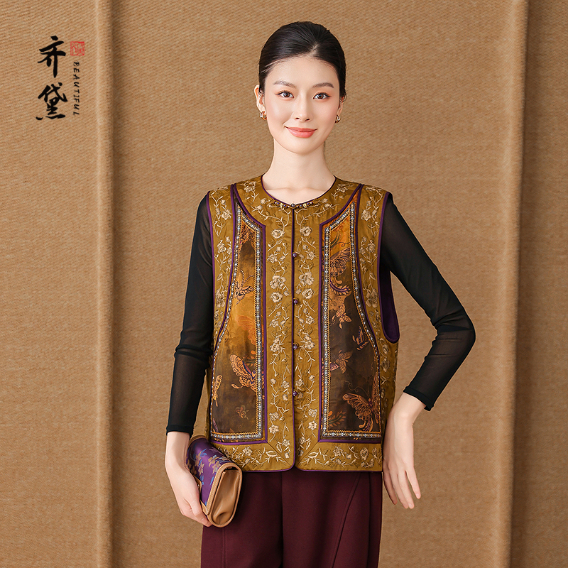 背心马夹真丝正品 无袖 外套 国风马甲2025新款 齐黛花罗香云纱新中式