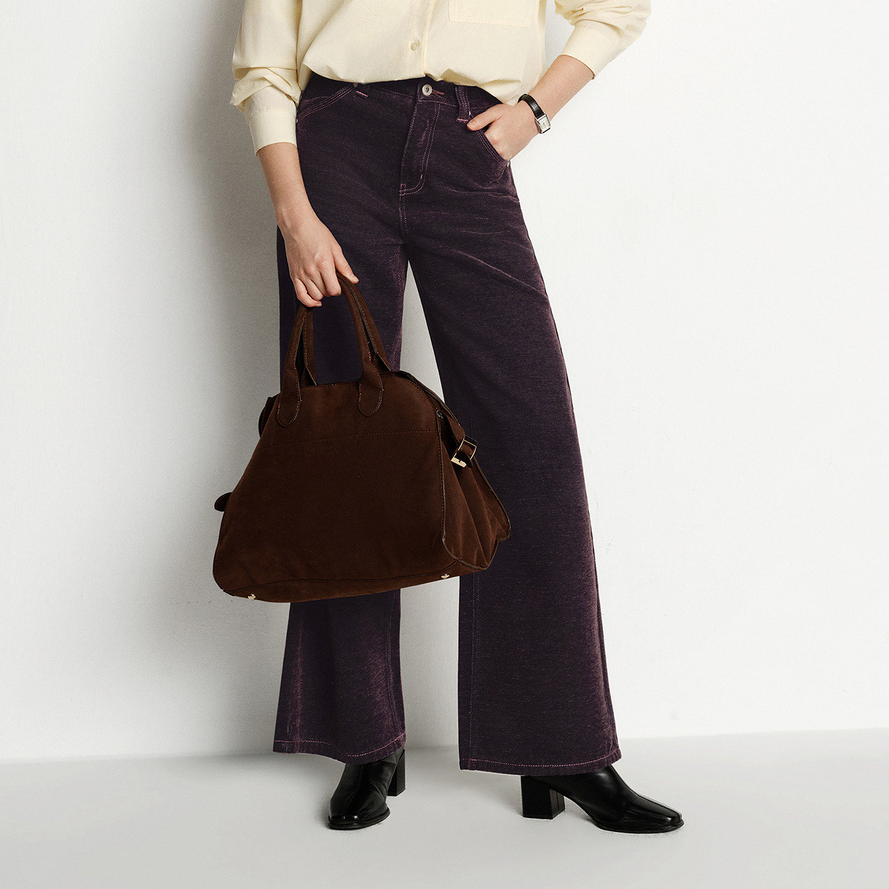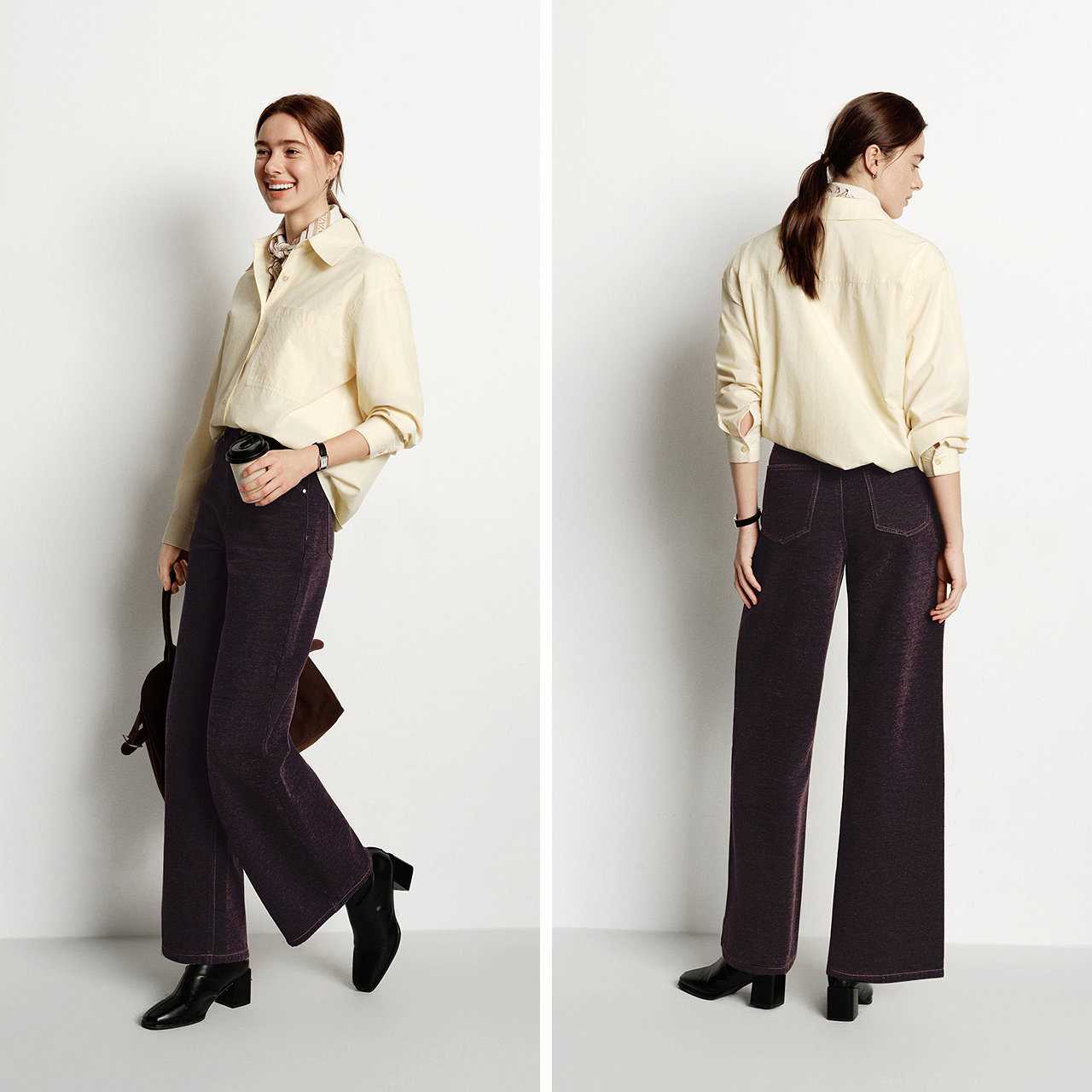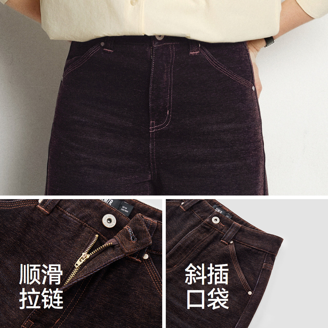 冬抓毛宽松阔腿裤 酷飒风2025新款 复古 女美拉德植绒长裤 森马牛仔裤