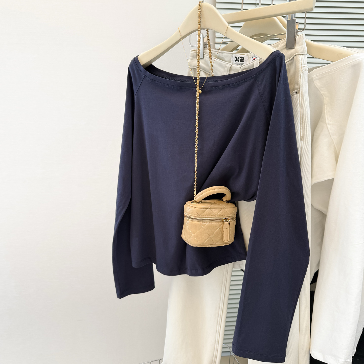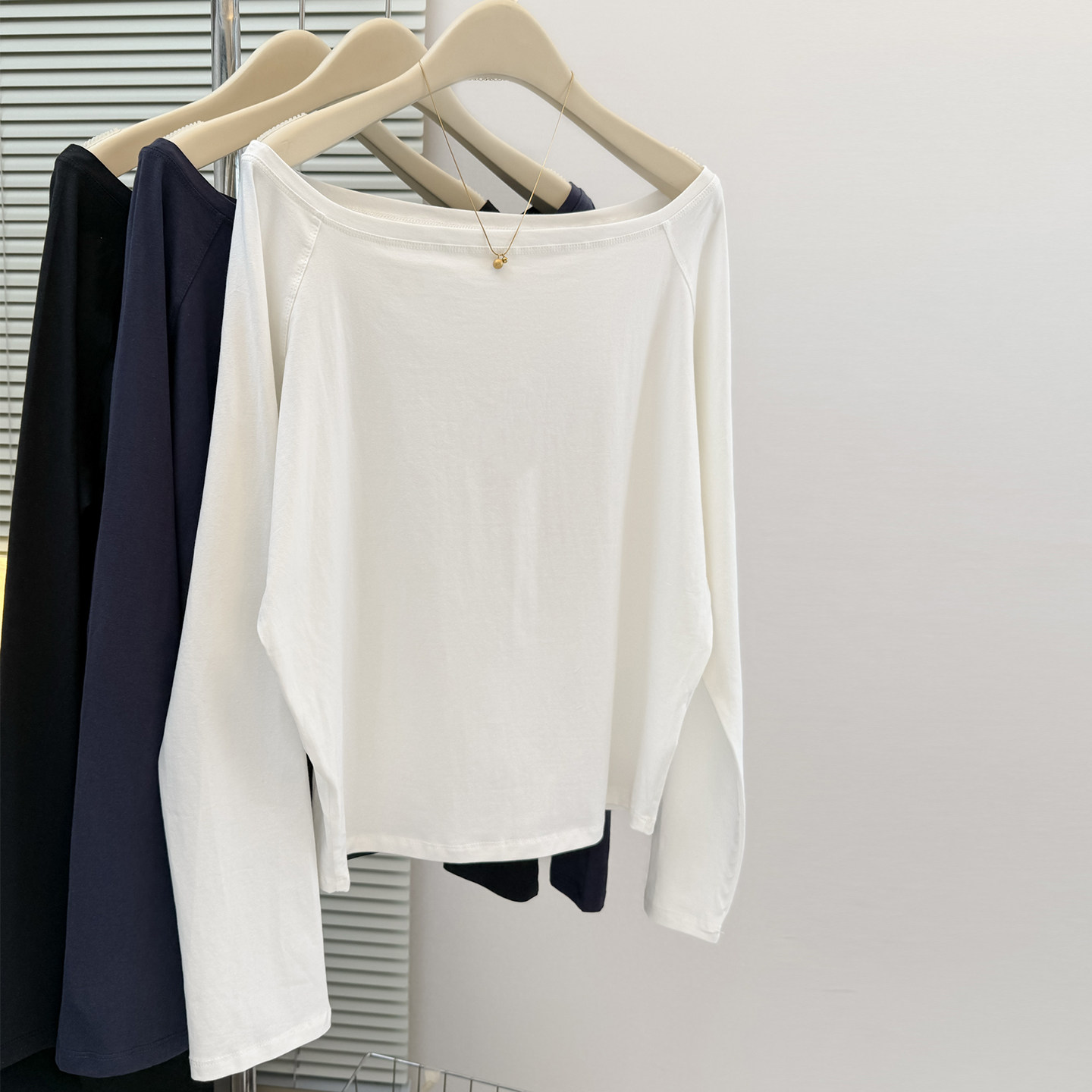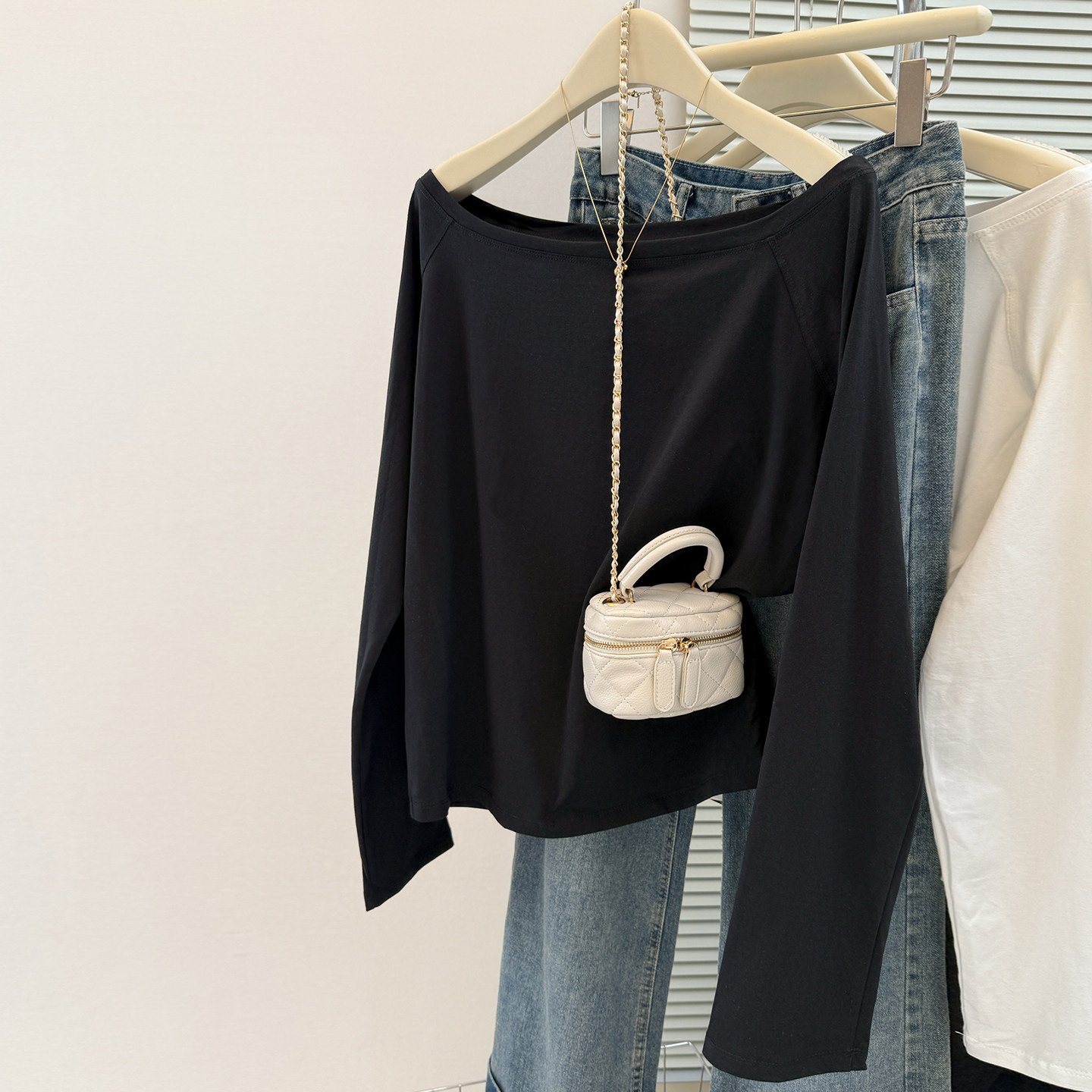 内搭打底衫 一字肩长袖 宽松韩版 新款 辣妹露肩上衣 T恤女2026春秋季