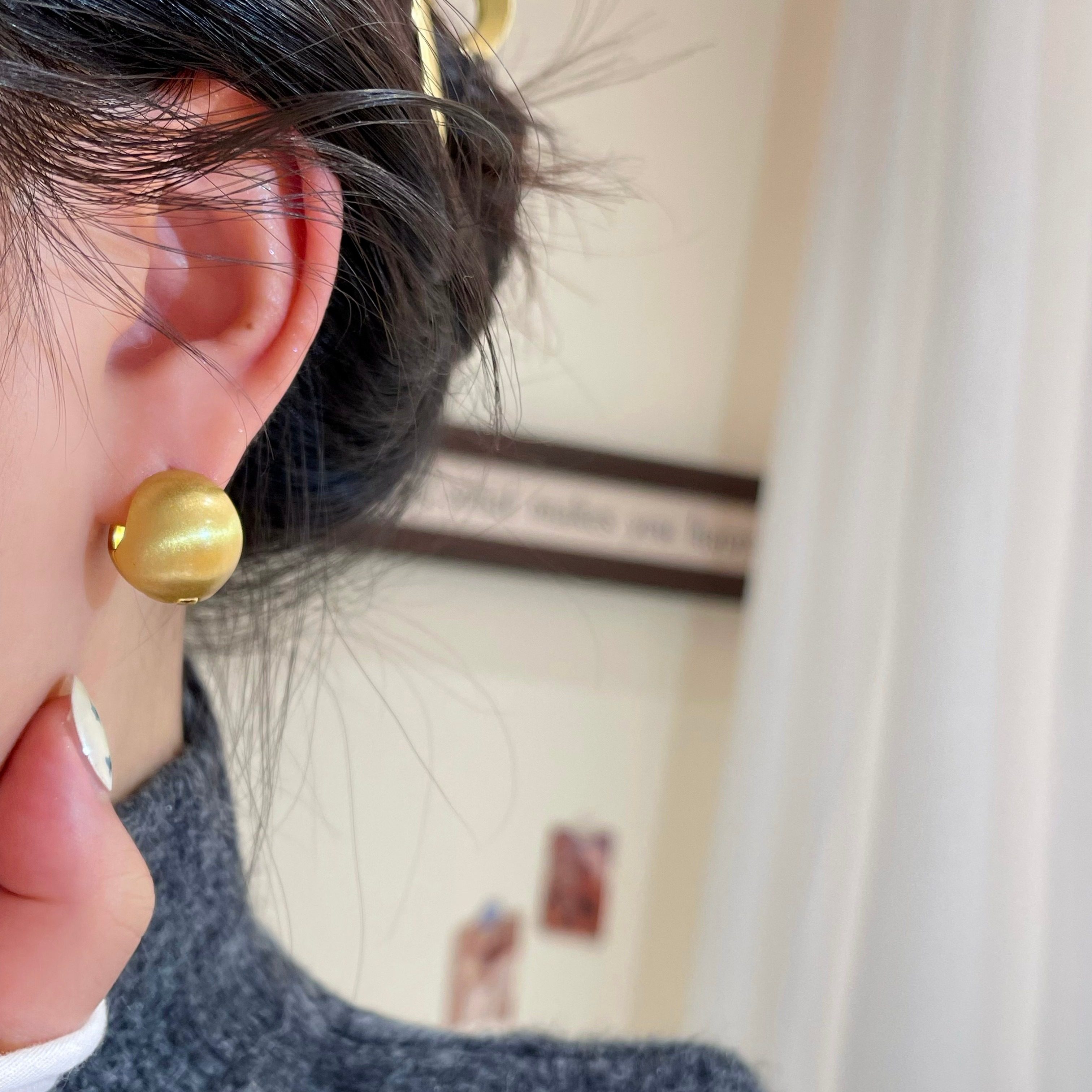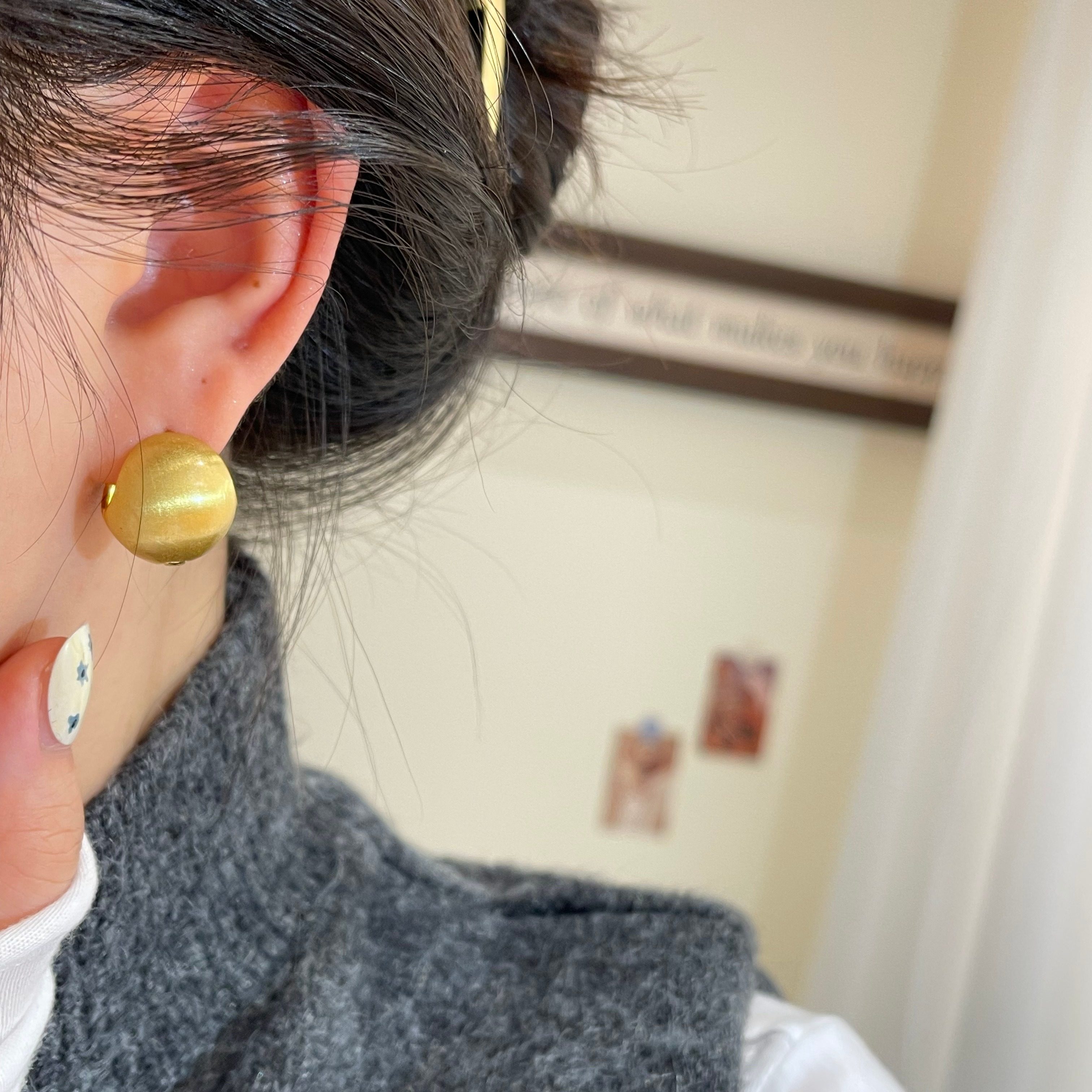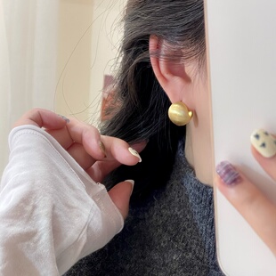 AJIDOU阿吉豆耳钉女金色耳扣小金豆耳环轻奢小众耳钩坠高级感饰品