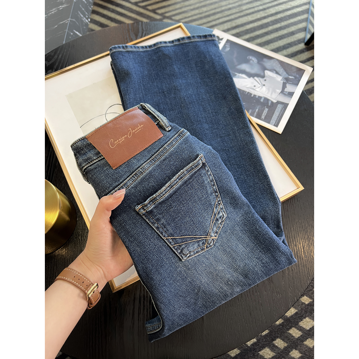 秋宽松弹力阔腿裤 双身高制版 女2025新款 直筒牛仔裤 斜裁剪阔版