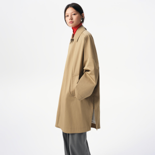 翻领外套BDS3FD3102 新款 播商场同款 卡其色宽松气质风衣女秋季