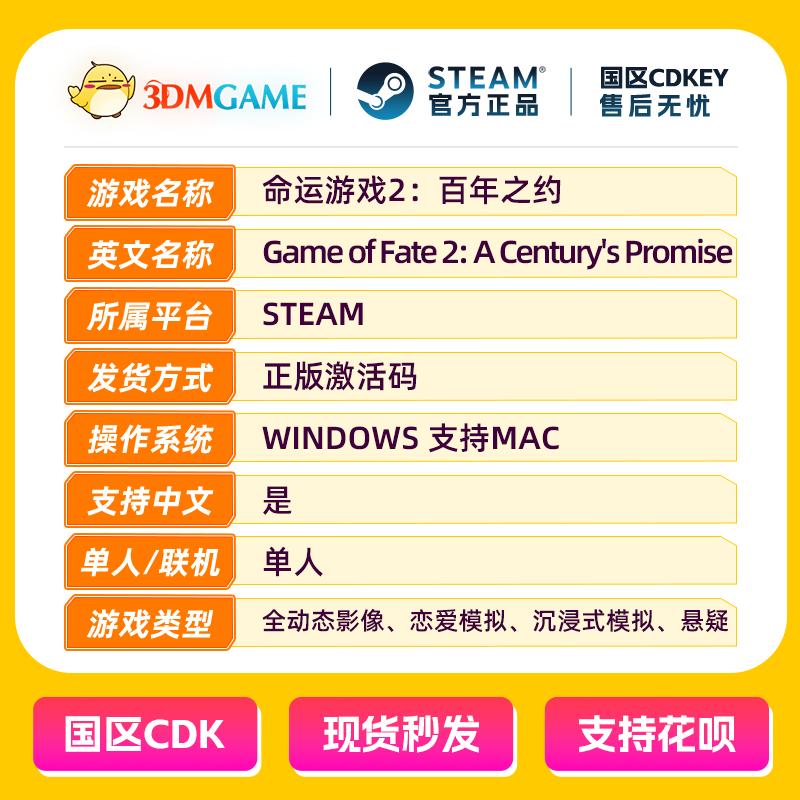 激活码 命运游戏2 Game Fate国区现货CDKEY 百年之约 Steam正版