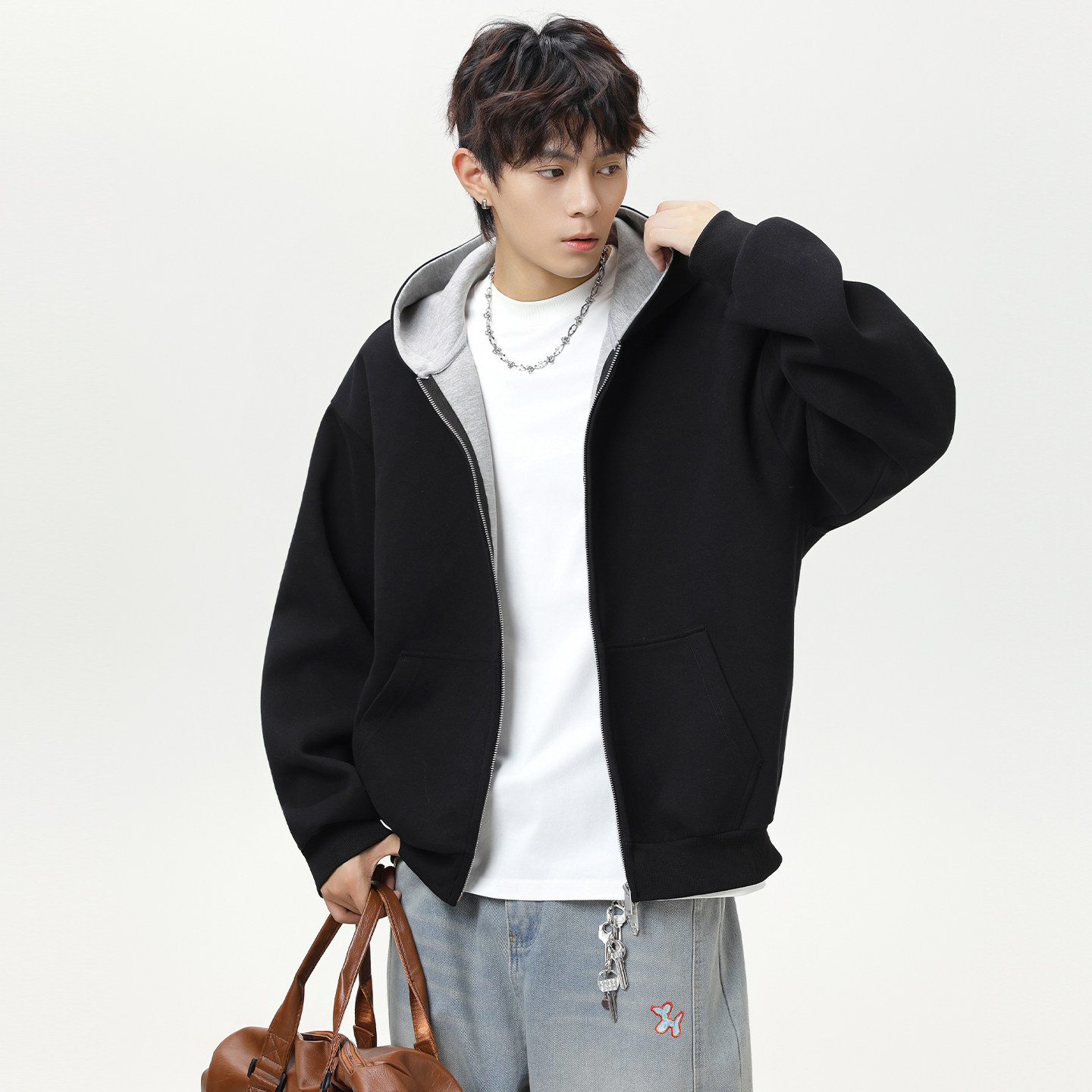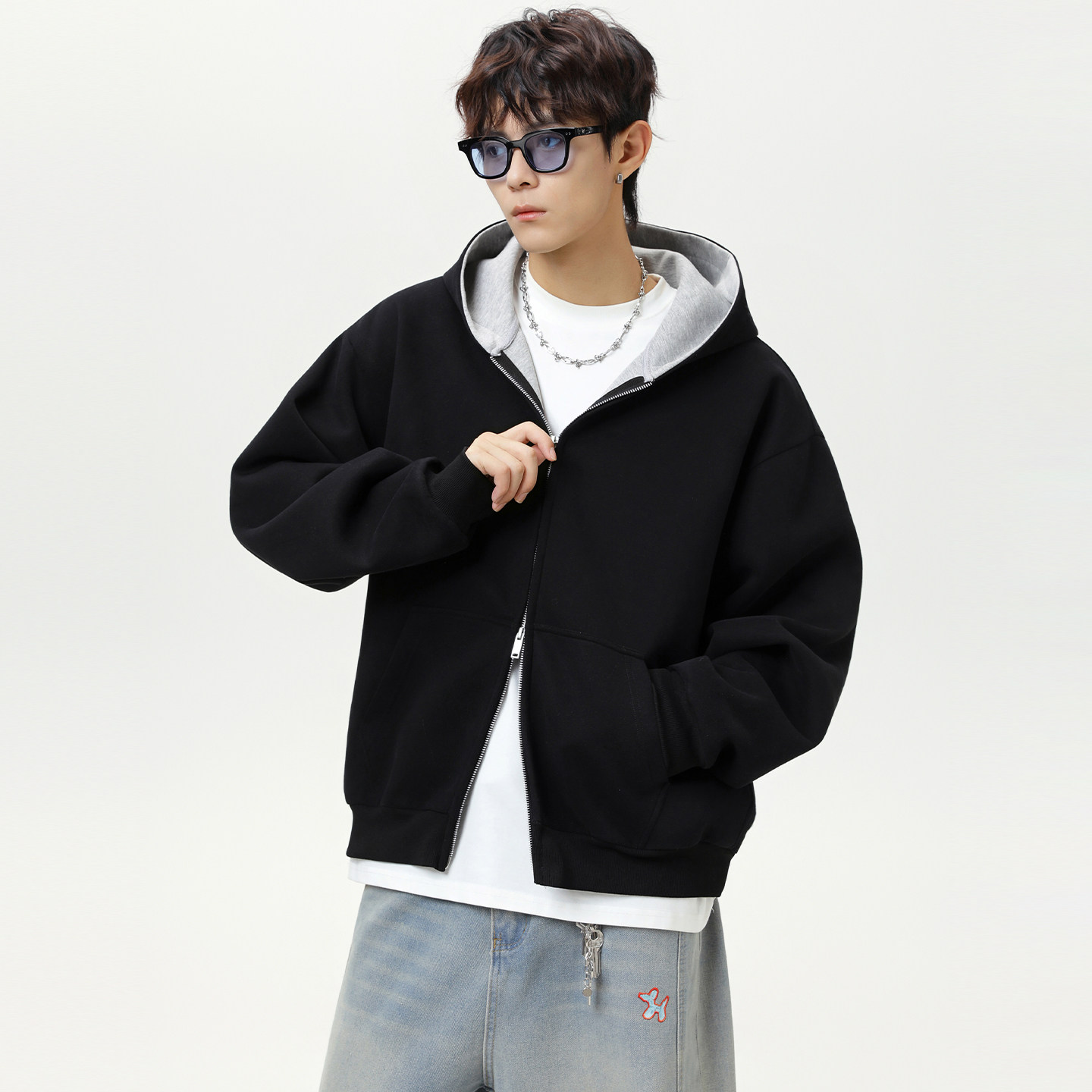 卫衣设计感男女同款 复古连帽拉链撞色长袖 UP简约休闲百搭美式 OFF